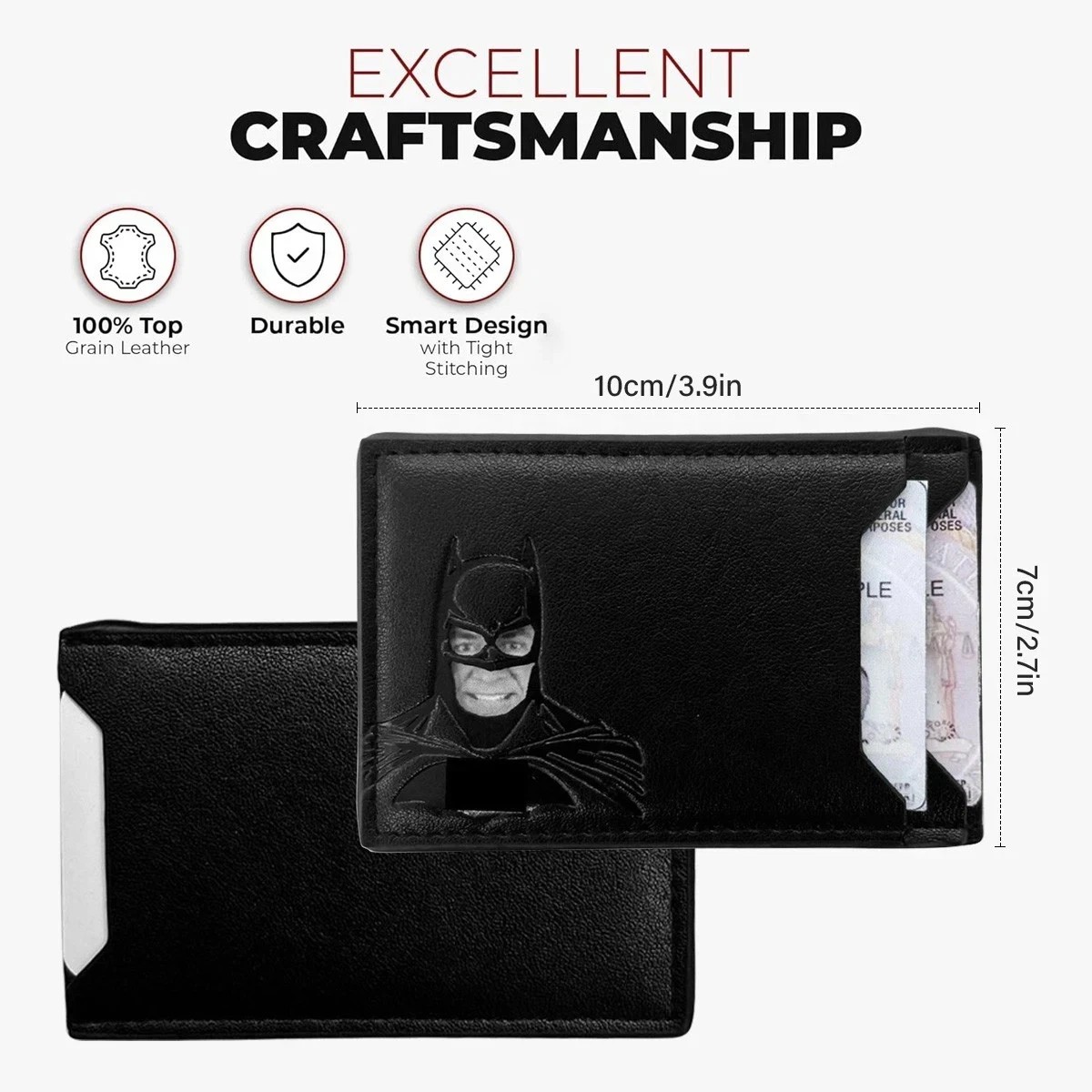 Personalized Leather Bat Wallet Superhero Mask Card Holder Heroic ID Wallet