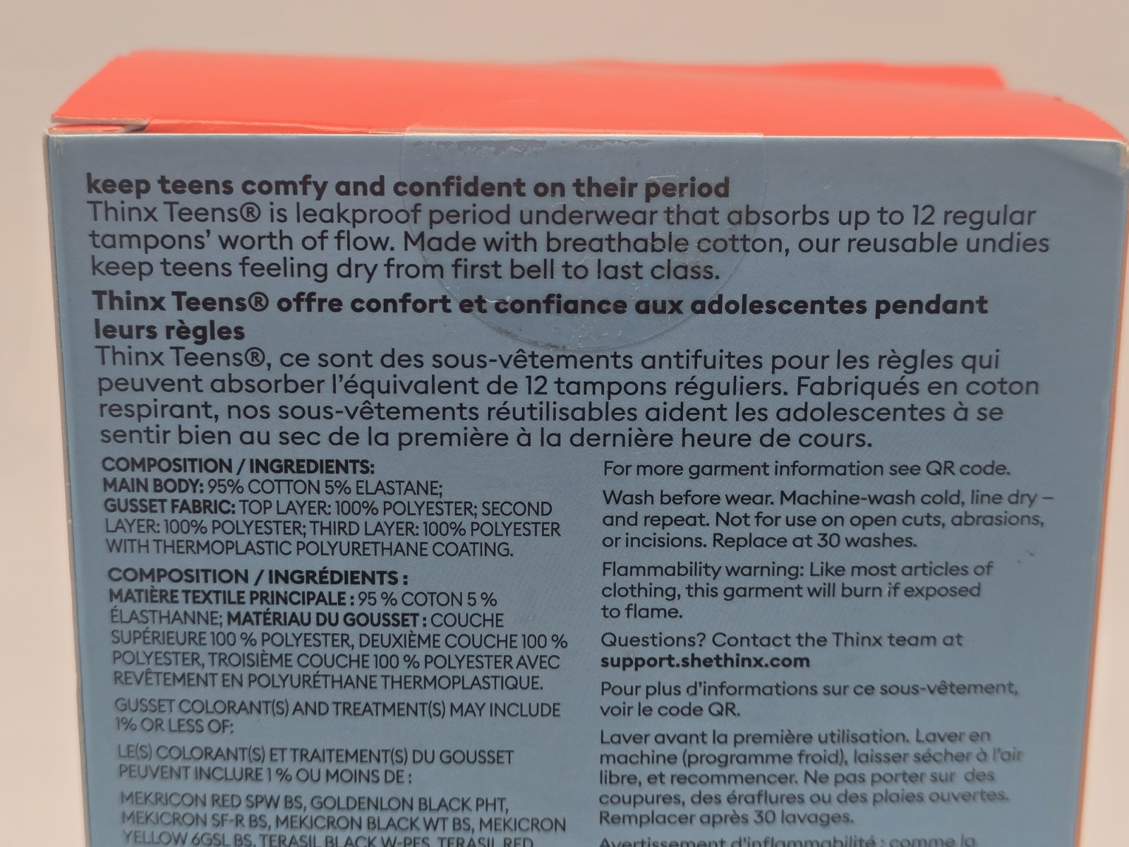 Thinx Teens Cotton Leakproof Washable Period Underwear Bikini Size 9/10 S/P