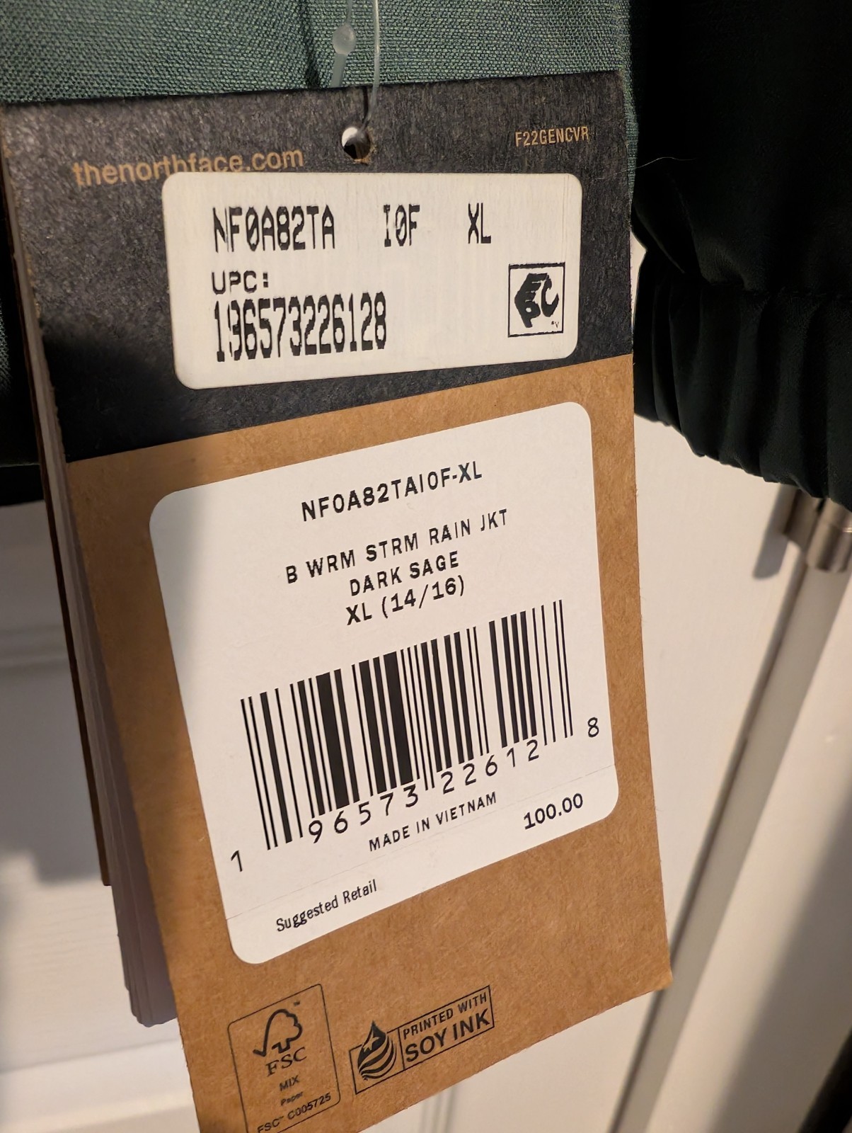 как выглядит The North Face Boys Size XL 14/16 Warm Storm Rain Jacket NWT Dark Sage фото