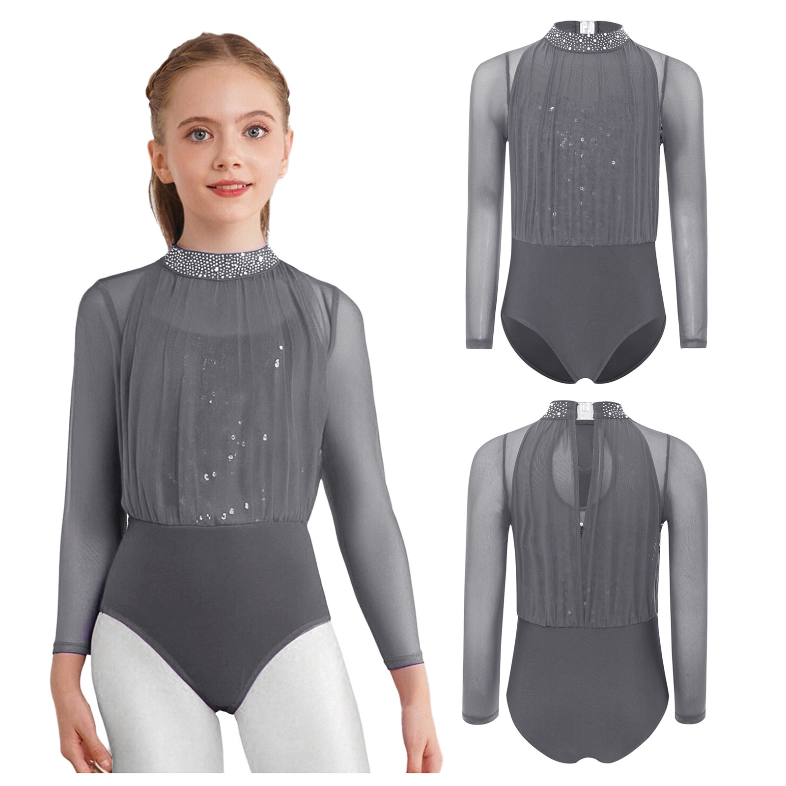 как выглядит Kids Girls Bodysuit Ballerina Jumpsuit Sheer Mesh Leotard Athletic Costume Jazz фото