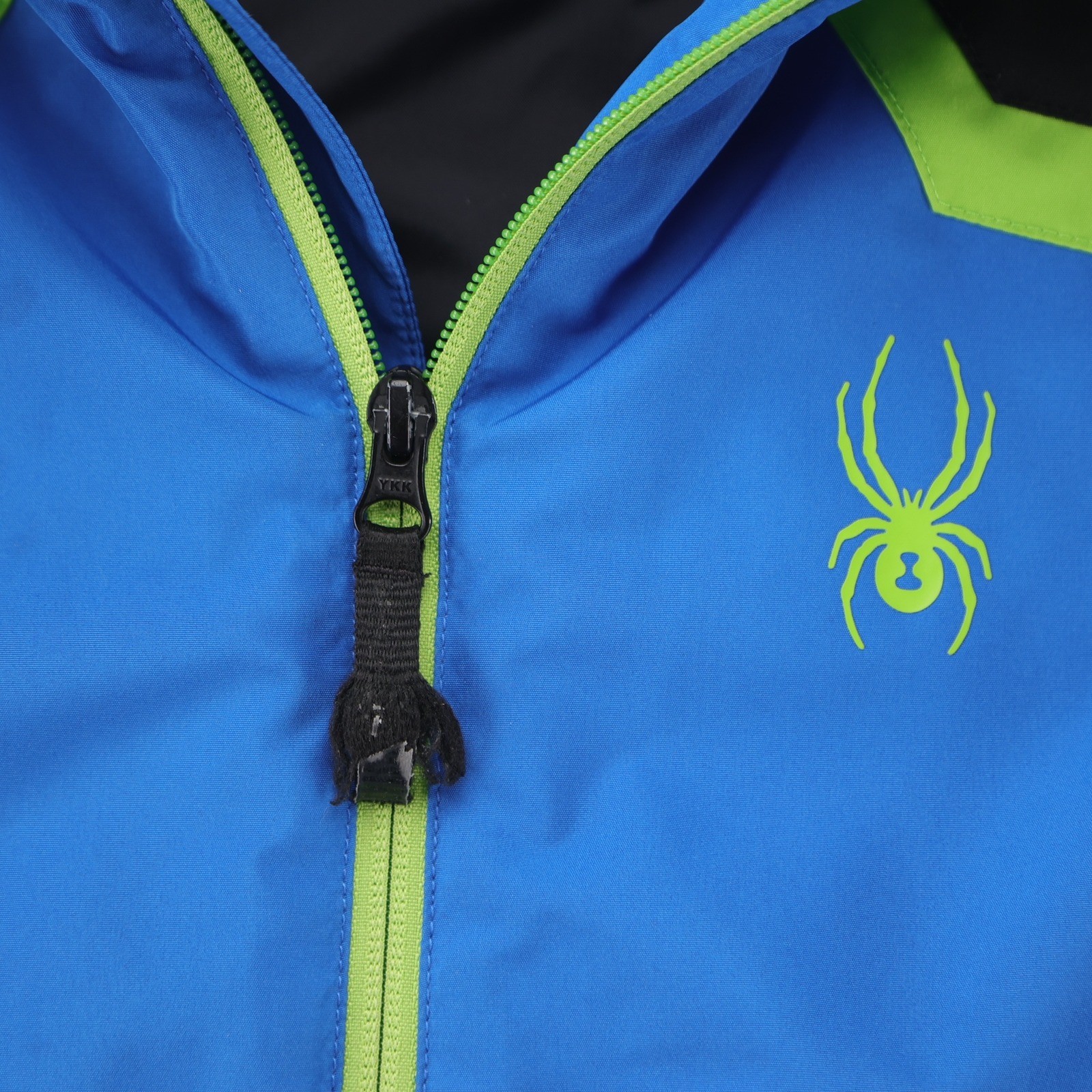 Spyder Boys Blue Black Lime Green Hooded Ski Jacket Size L 14/16 195019