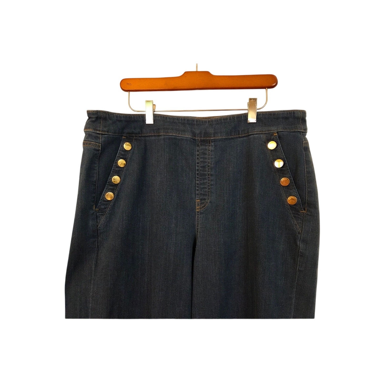 Chico's Medium Blue Wide Leg Women's Jeans with Gold Button Details. Size 16R
