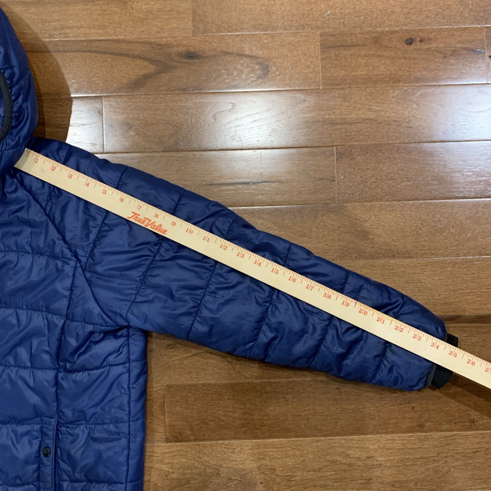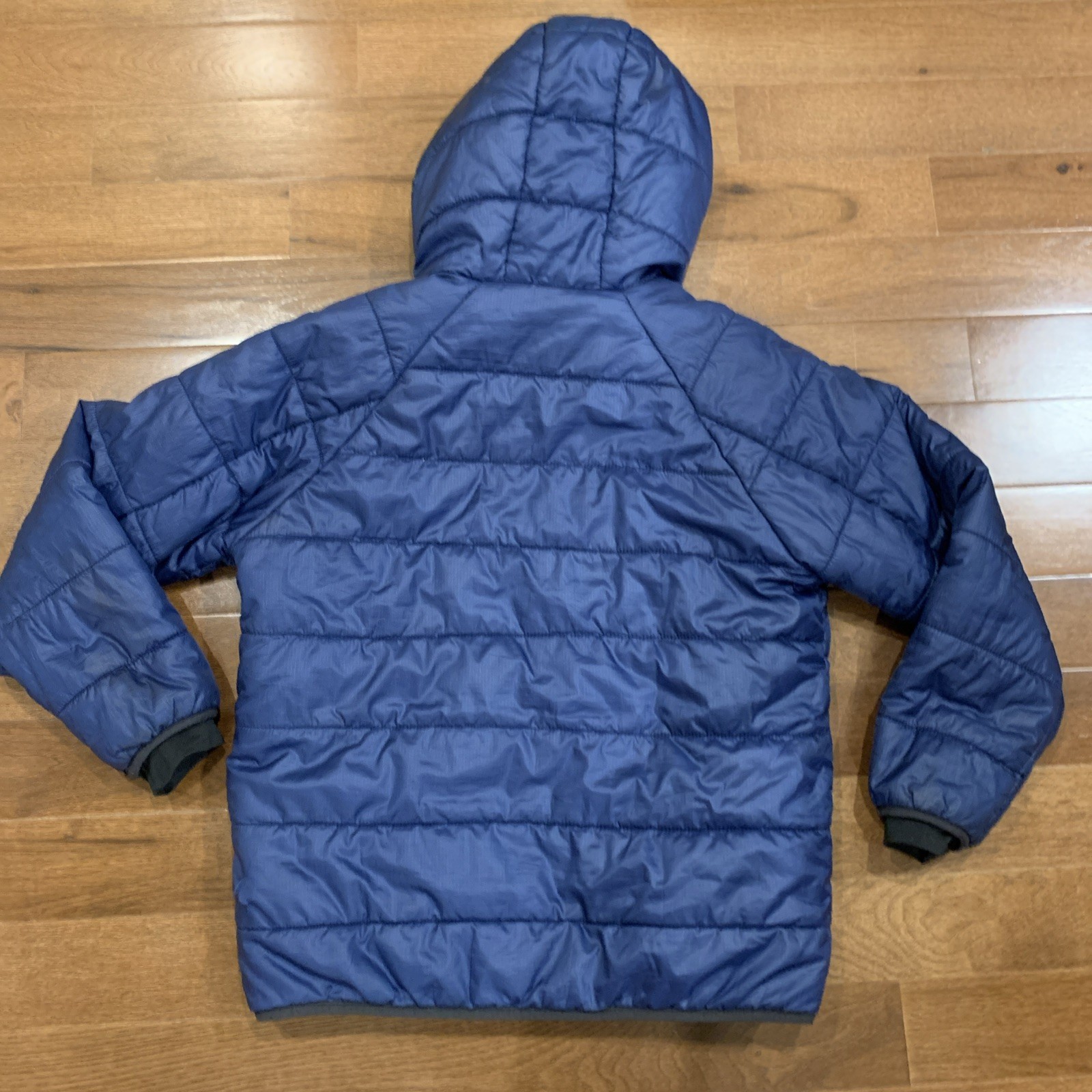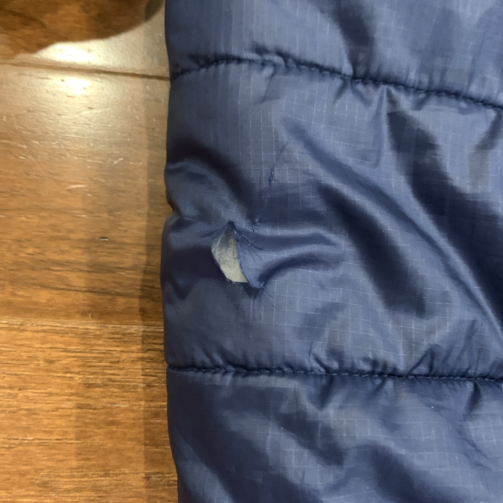как выглядит Gap Kids Navy Hooded Puffer Coat Sz XL 12 Zip Front small flaw, please read фото