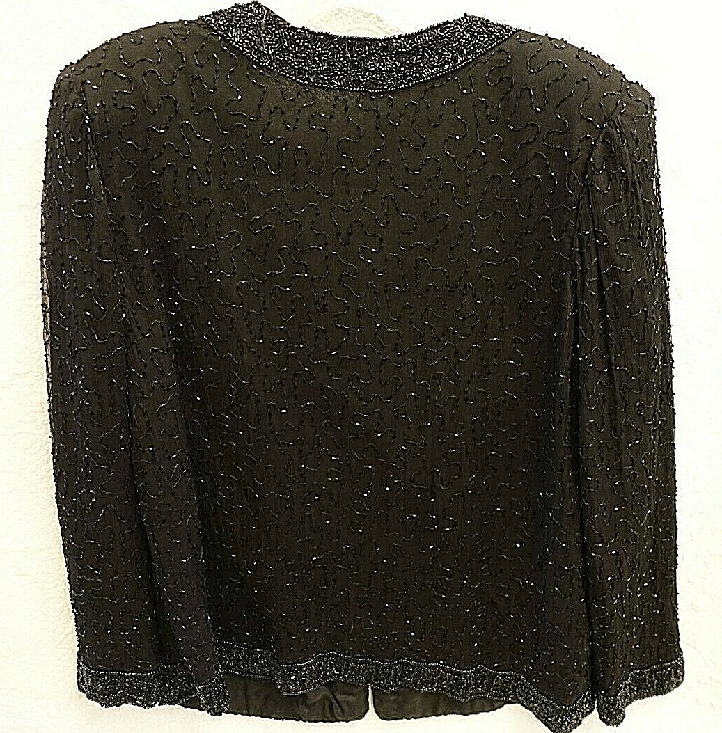 как выглядит Lawrence Kazar Black Beaded Evening Cocktail Party Jacket 100 Silk Size M фото