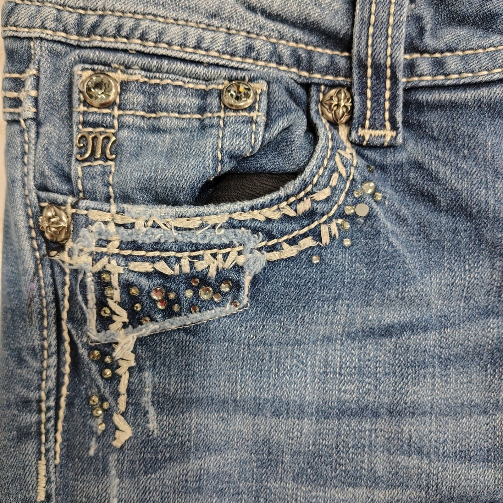 Miss Me Easy Cropped Jeans Distressed Embellished Size 30 Medium Wash JE5836EC