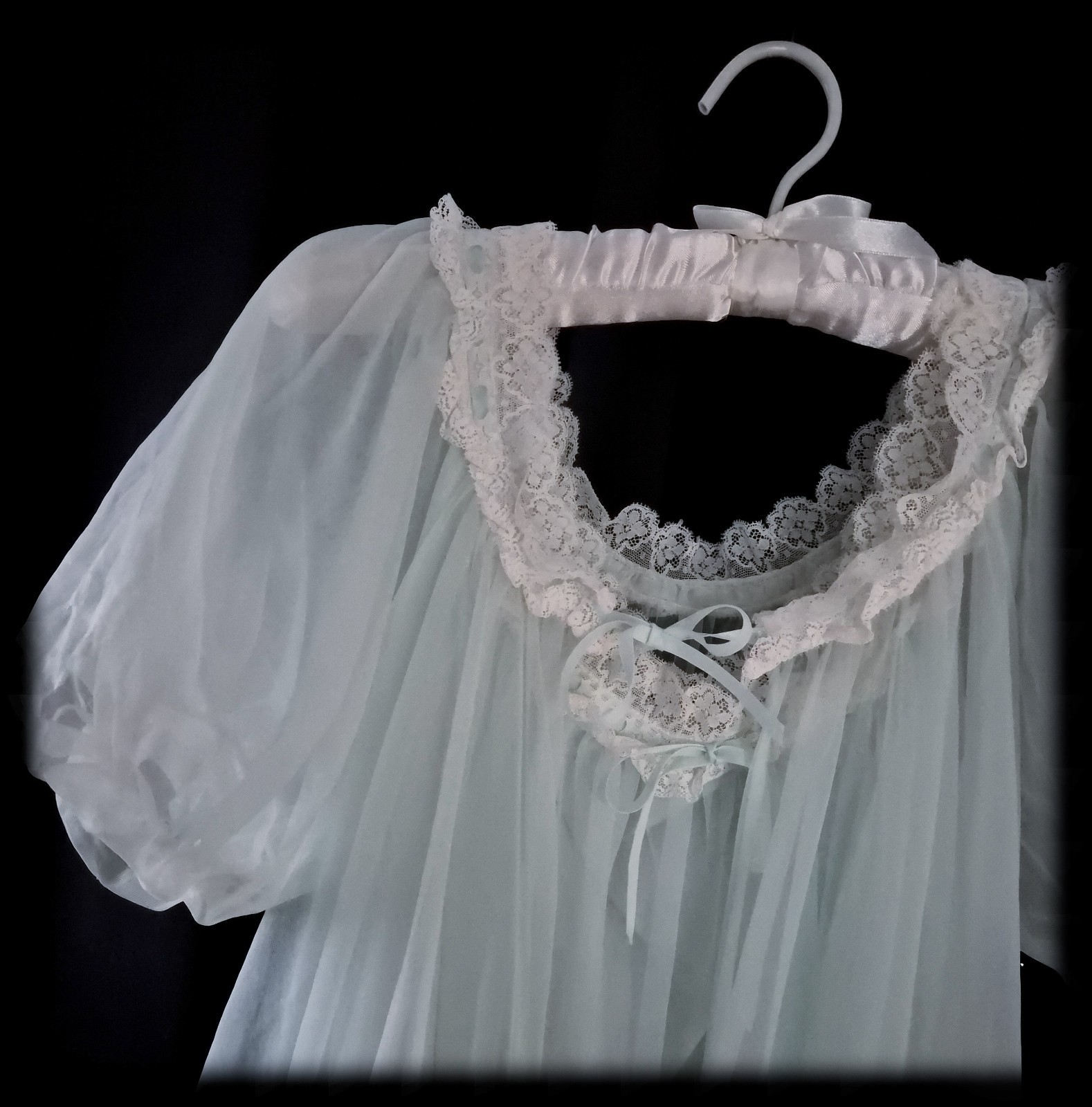 2pc Vintage LISETTE Nightgown PEIGNOIR Robe Set BABYDOLL Sheer CHIFFON Gown M/L