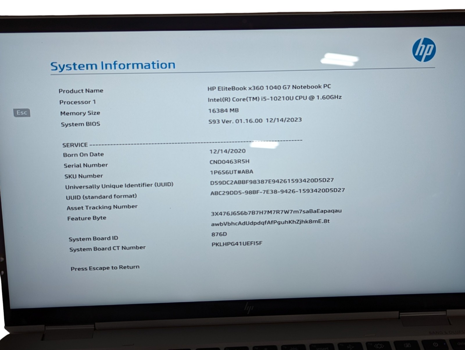 Модель: EliteBook X360 1040 G7