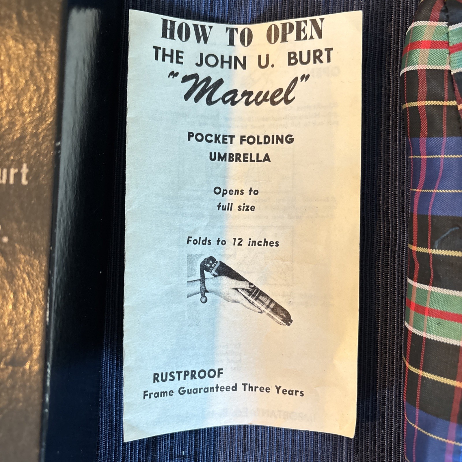 Vintage John U. Burt Marvel Jr. Umbrella - New in Box Blue Plaid