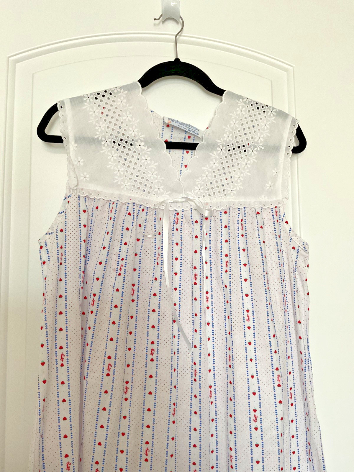 как выглядит Lanz of Salzburg Cotton Sleeveless Long Nightgown Strawberry Stripe L-NWOT USA фото