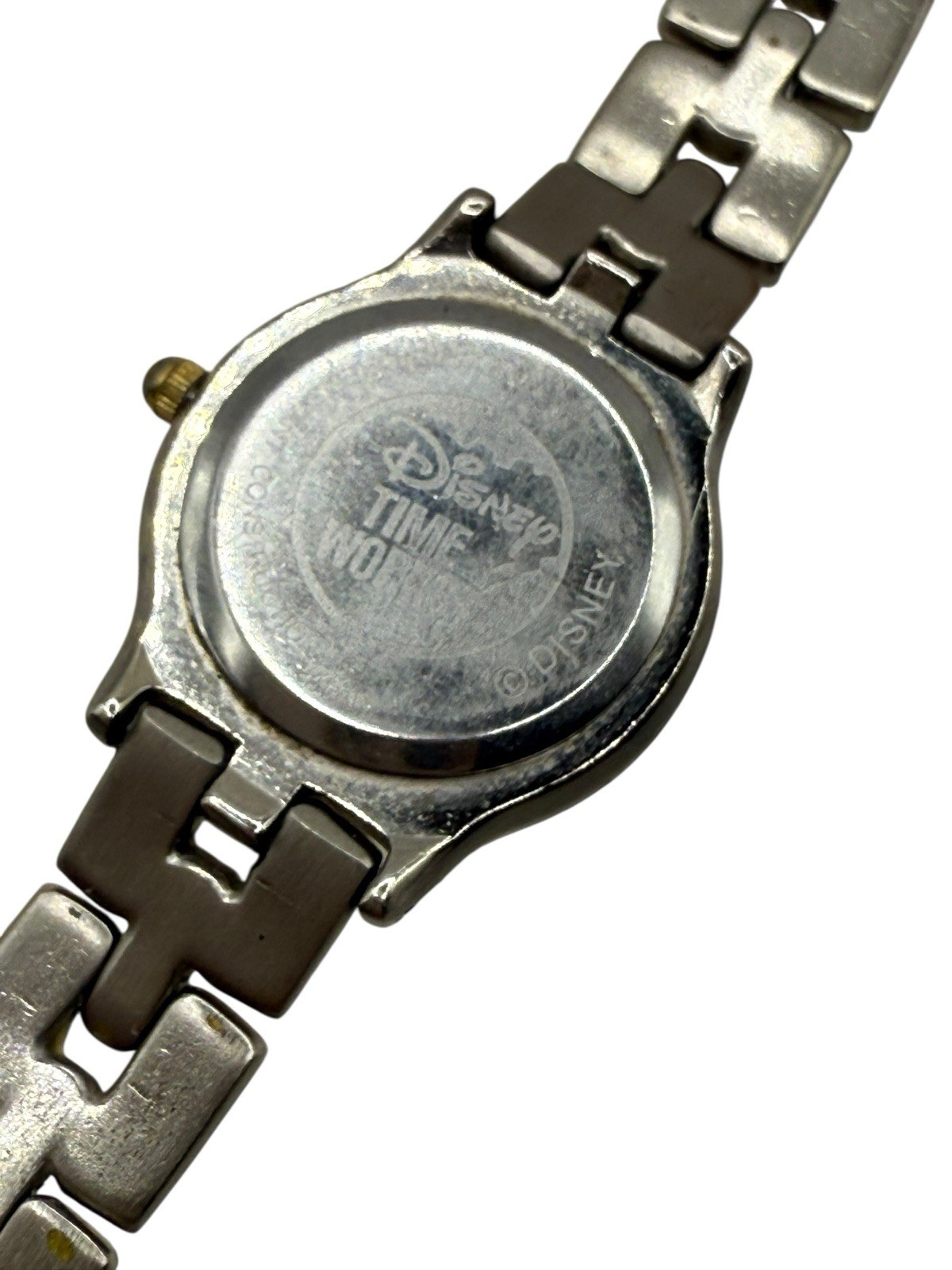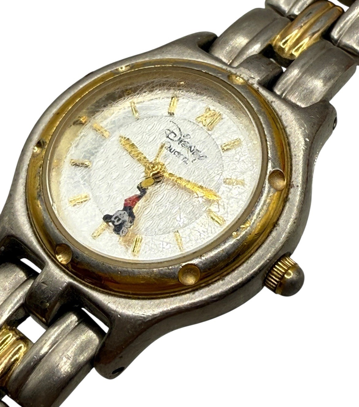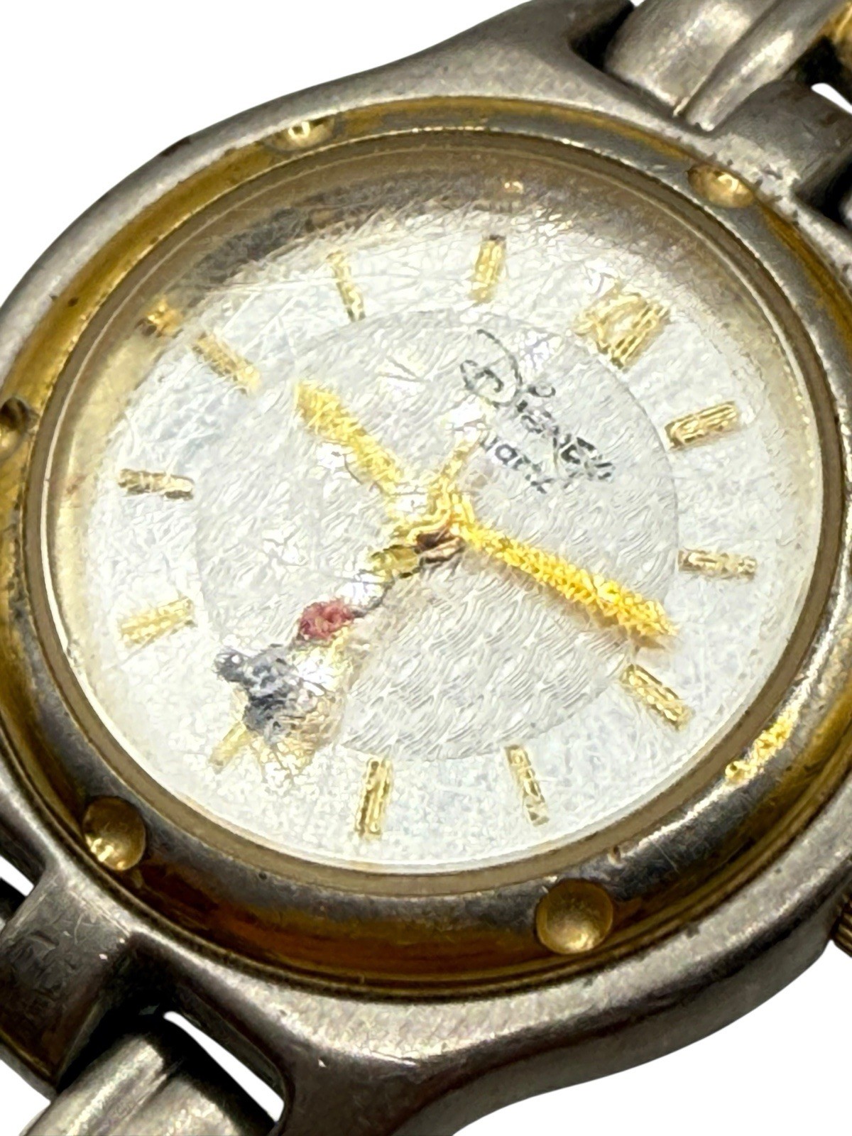 • Disney Mickey Mouse Watch Holding On Seconds Hand Two Tone Link New Battery READ