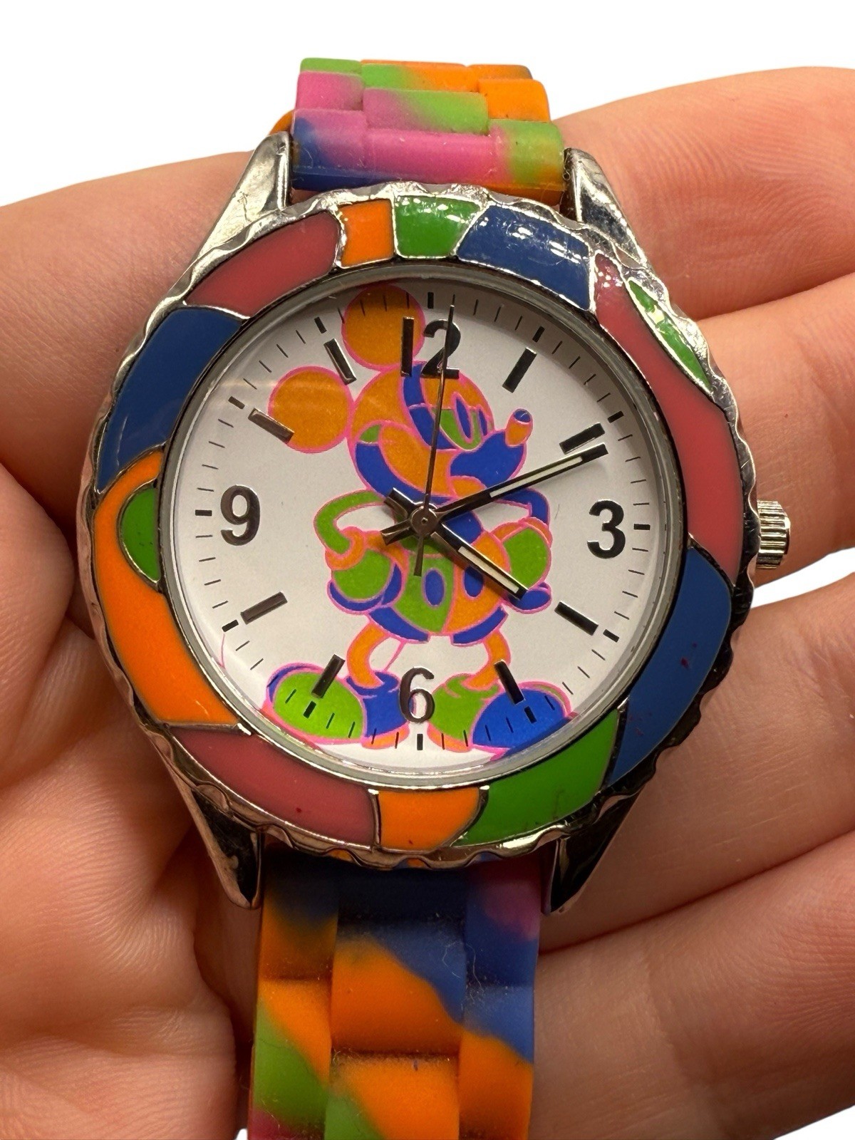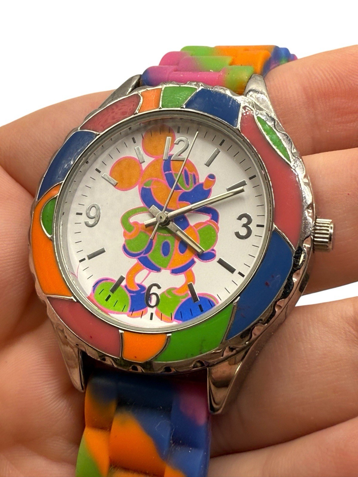 • Disney Parks Mickey Mouse Rainbow Paint Drip Watch New Battery