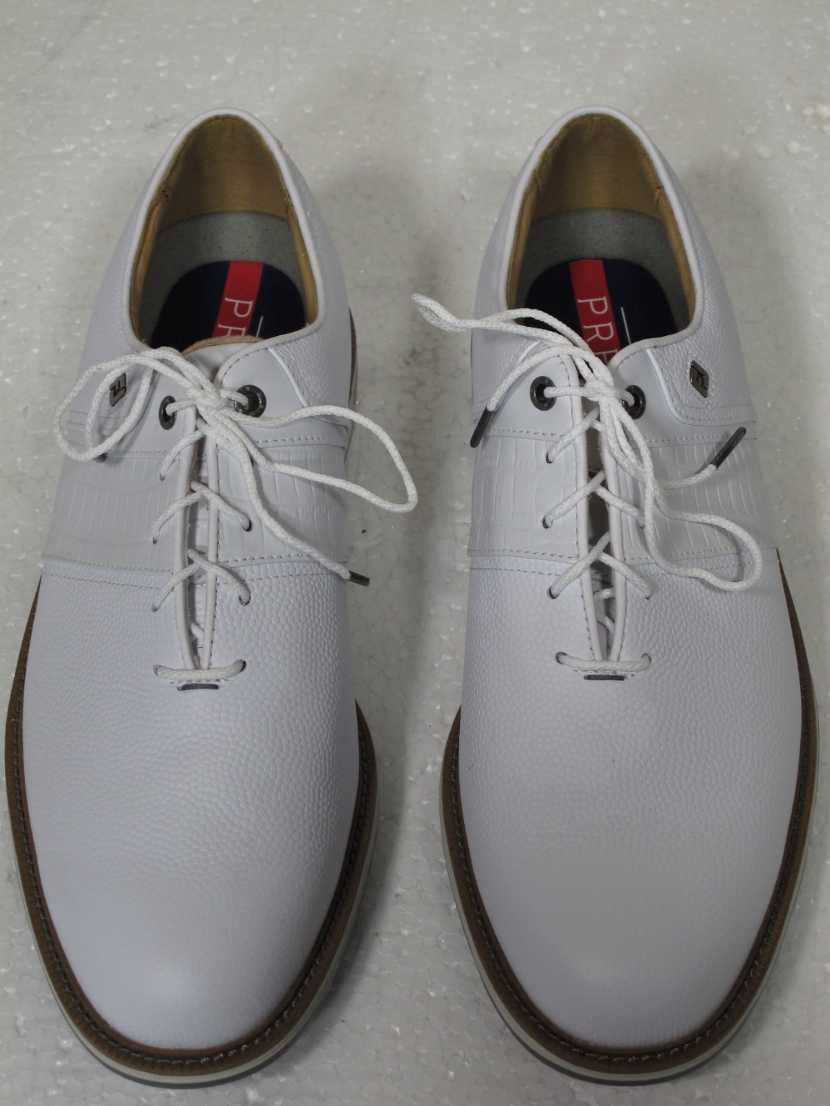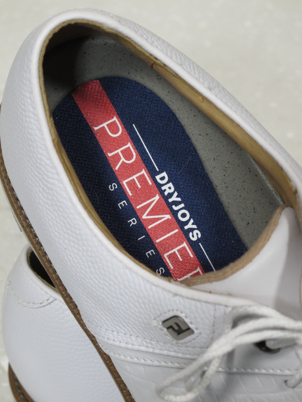 как выглядит Footjoy DryJoys Premiere Series Ortholite Golf Shoes 10M White Pebble Croc фото