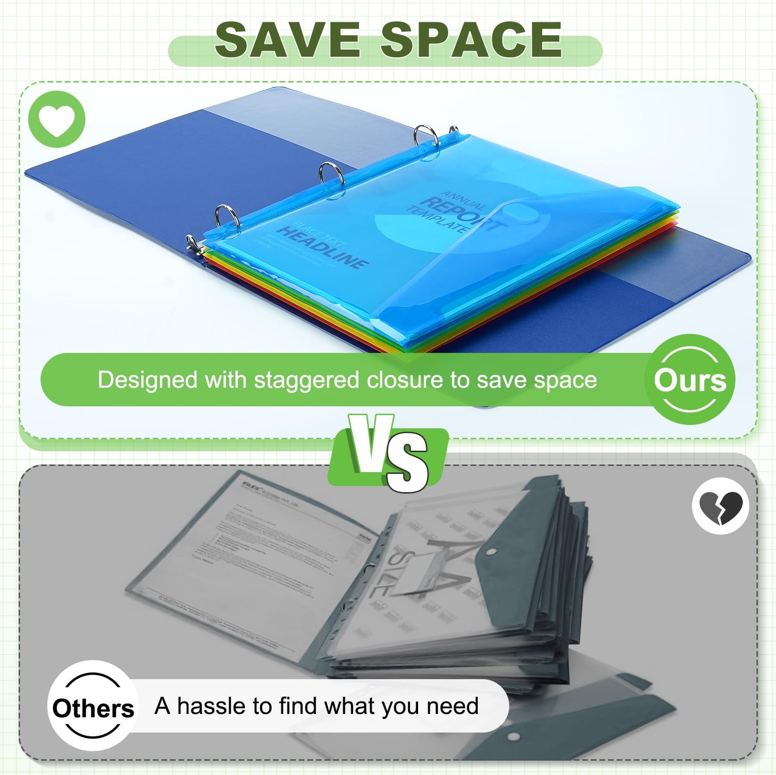 30 Pack Binder Folders Organizer with Staggered Closures, Super Heavyweight B...