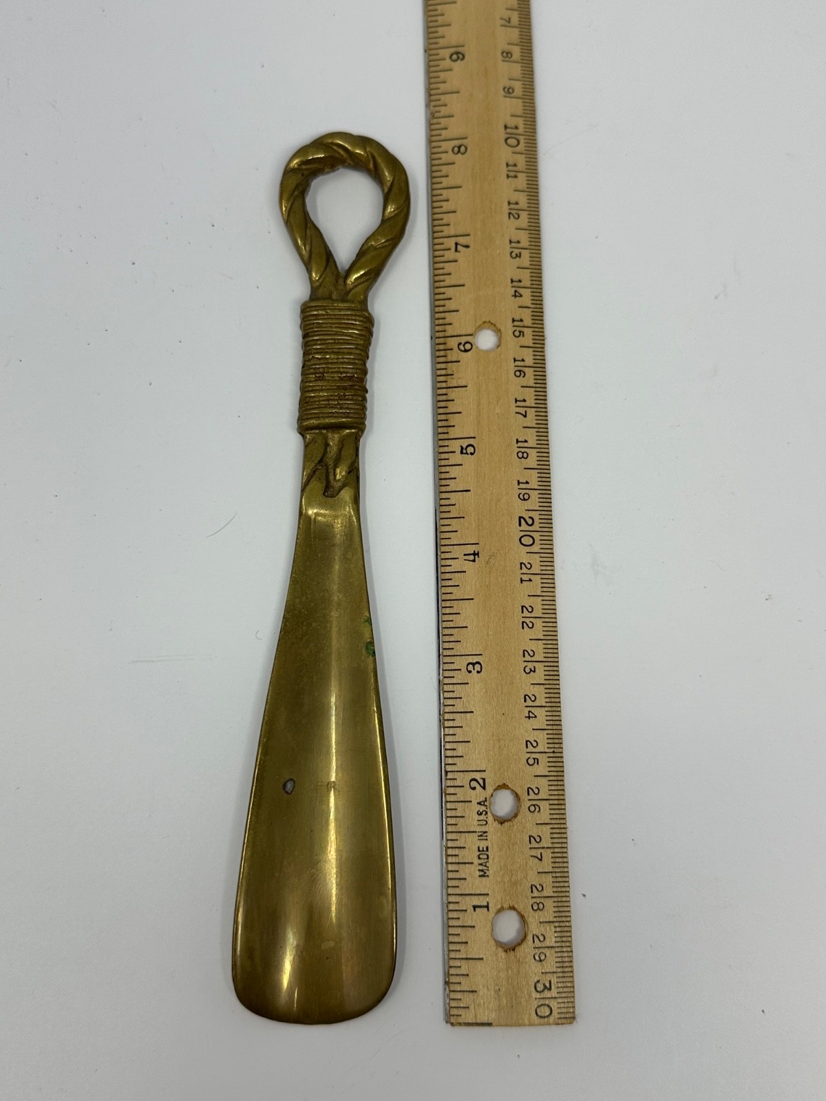 Vintage Solid Brass Rope Handled 8 Shoe Horn U9