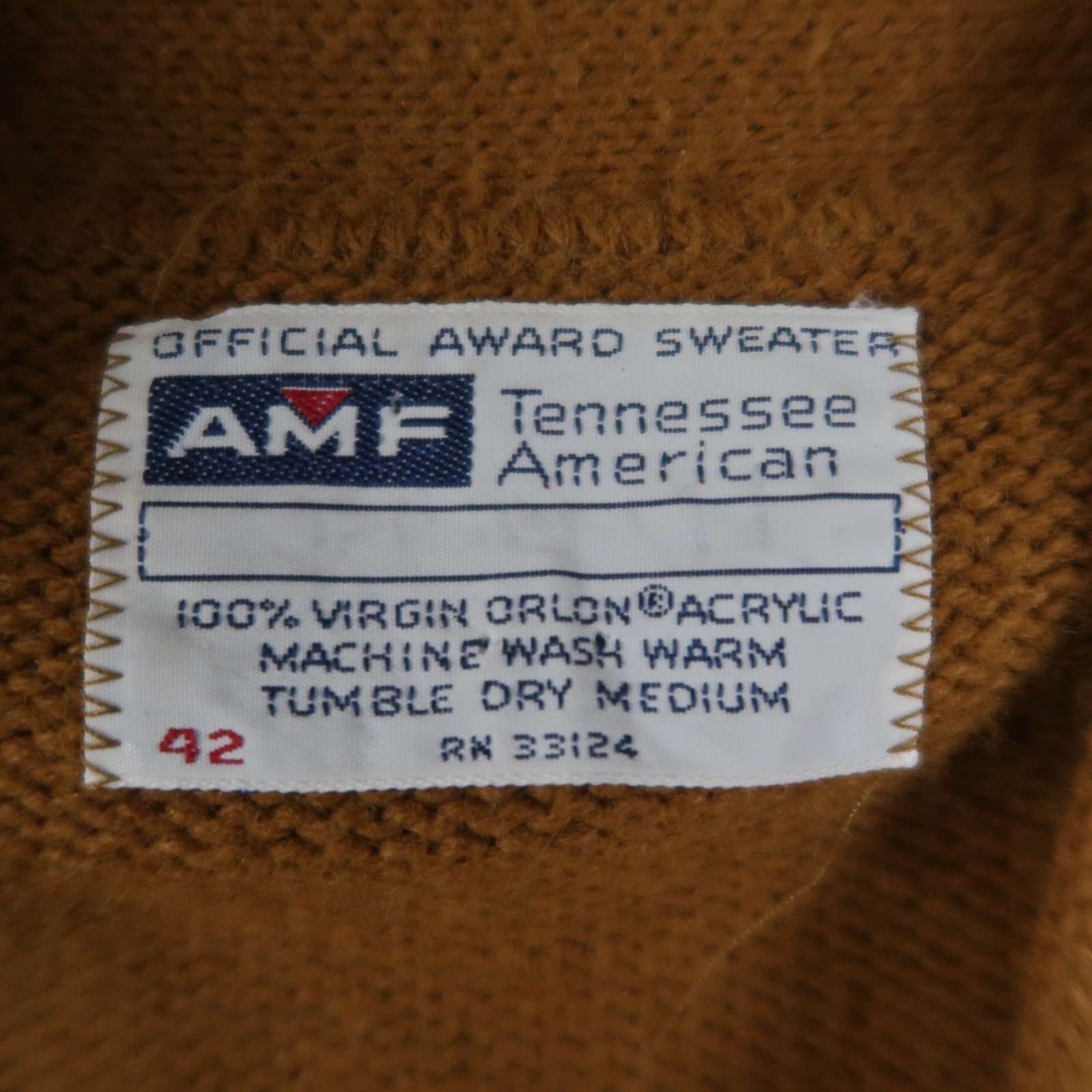 Vintage 80s Letterman Sweater Cardigan School Size 42 Khaki Acrylic College