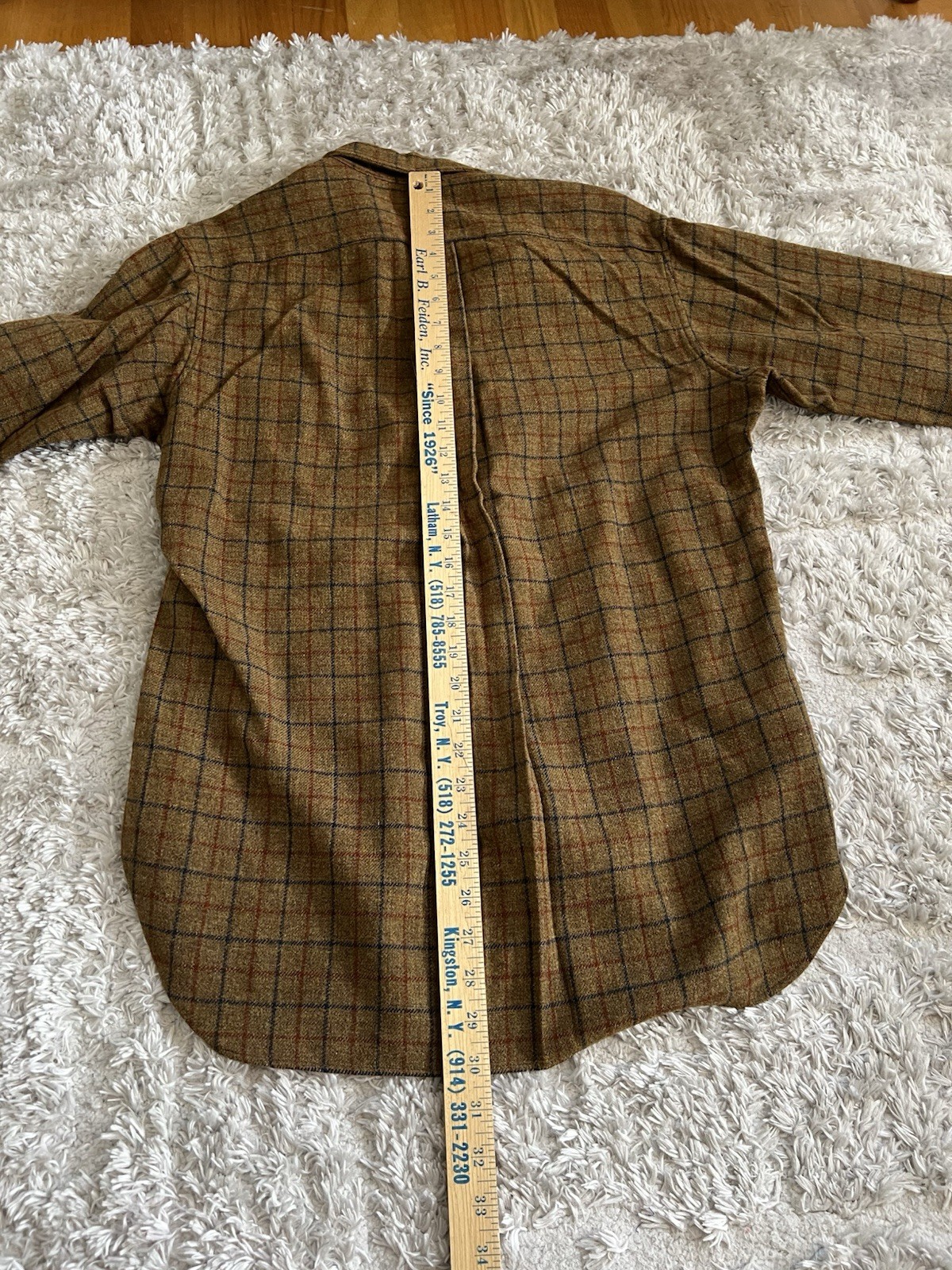 как выглядит Vintage 60s Pendleton Wool Flannel Shirt Brown Plaid Elbow Patches Mens Large фото