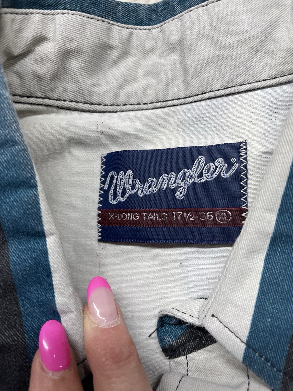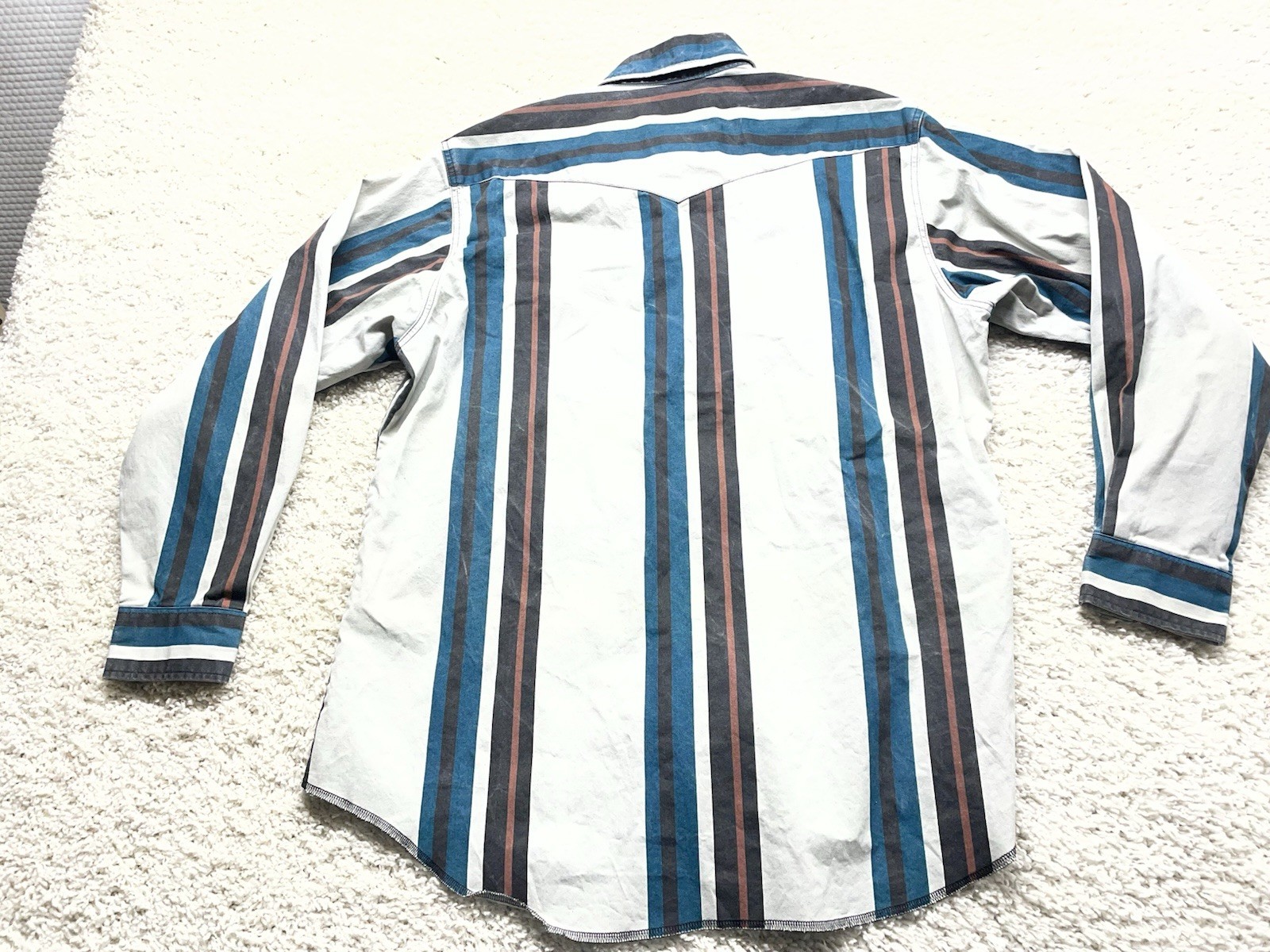 Vintage Wrangler L/S Striped Brushpopper Pearl Snap Shirt Men s XL EUC