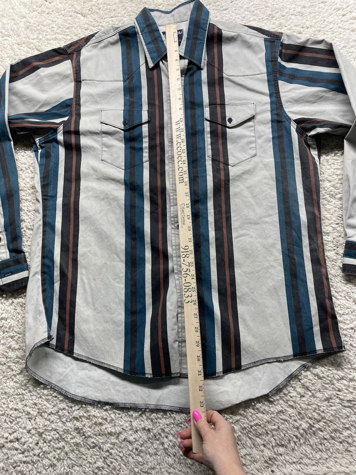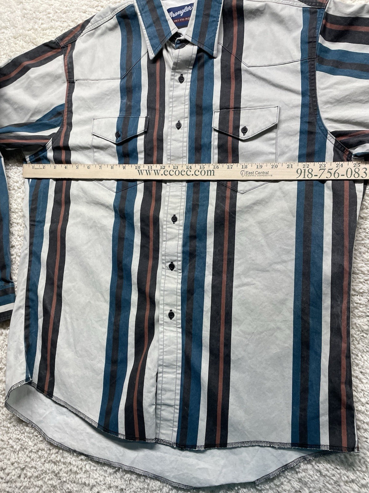 как выглядит Vintage Wrangler L/S Striped Brushpopper Pearl Snap Shirt Men s XL EUC фото