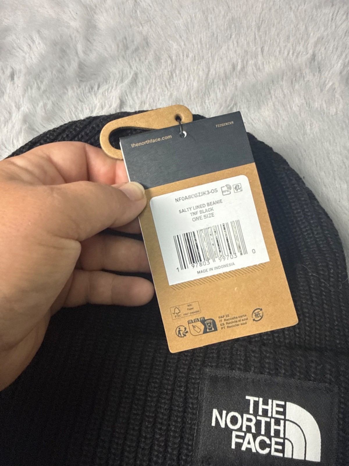 как выглядит The North Face Beanie Hat Cap Black One Size Salty Lined Knit фото