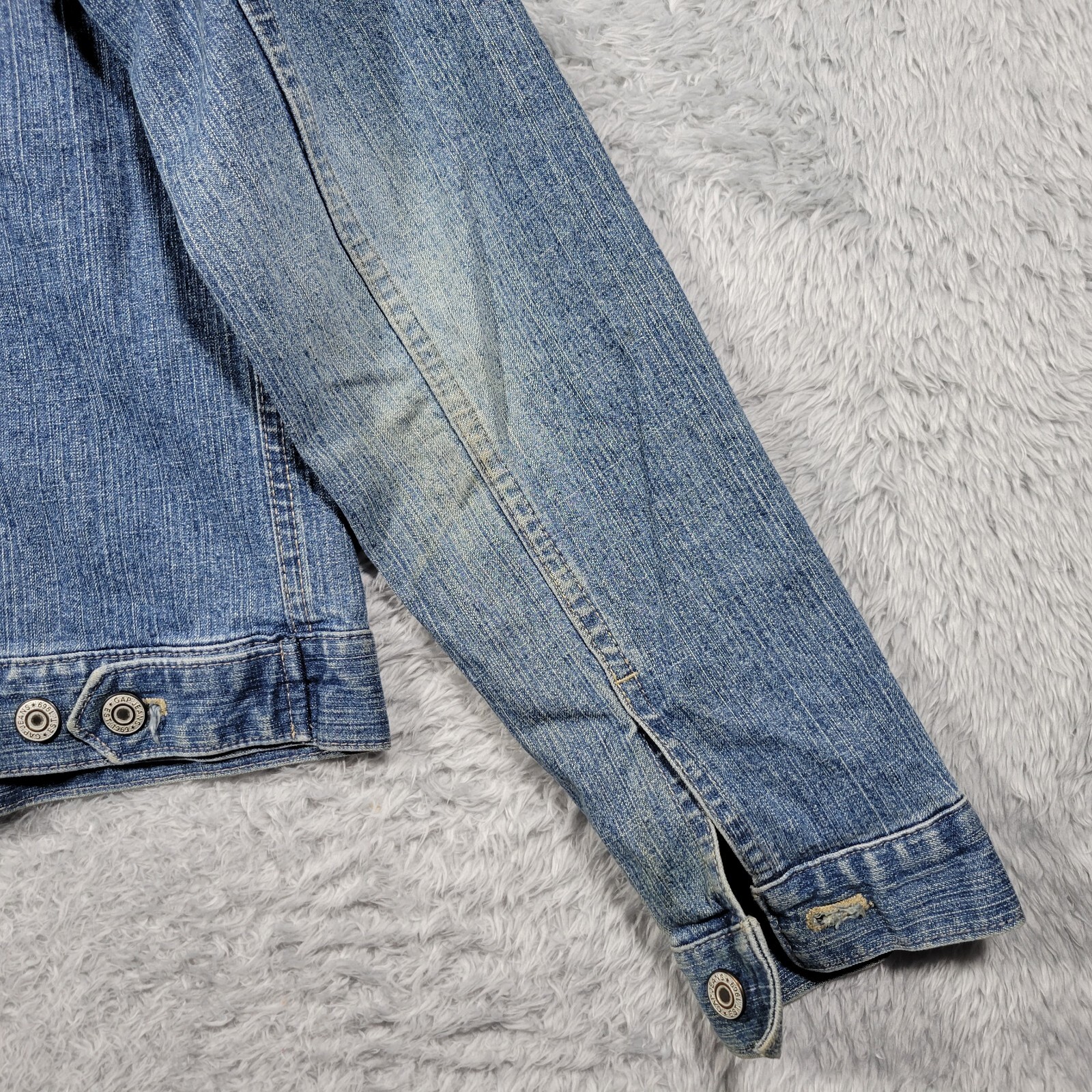 Gap Denim Jean Jacket Kids Girls XXL Blue Button Up Long Sleeve - dirt/wear