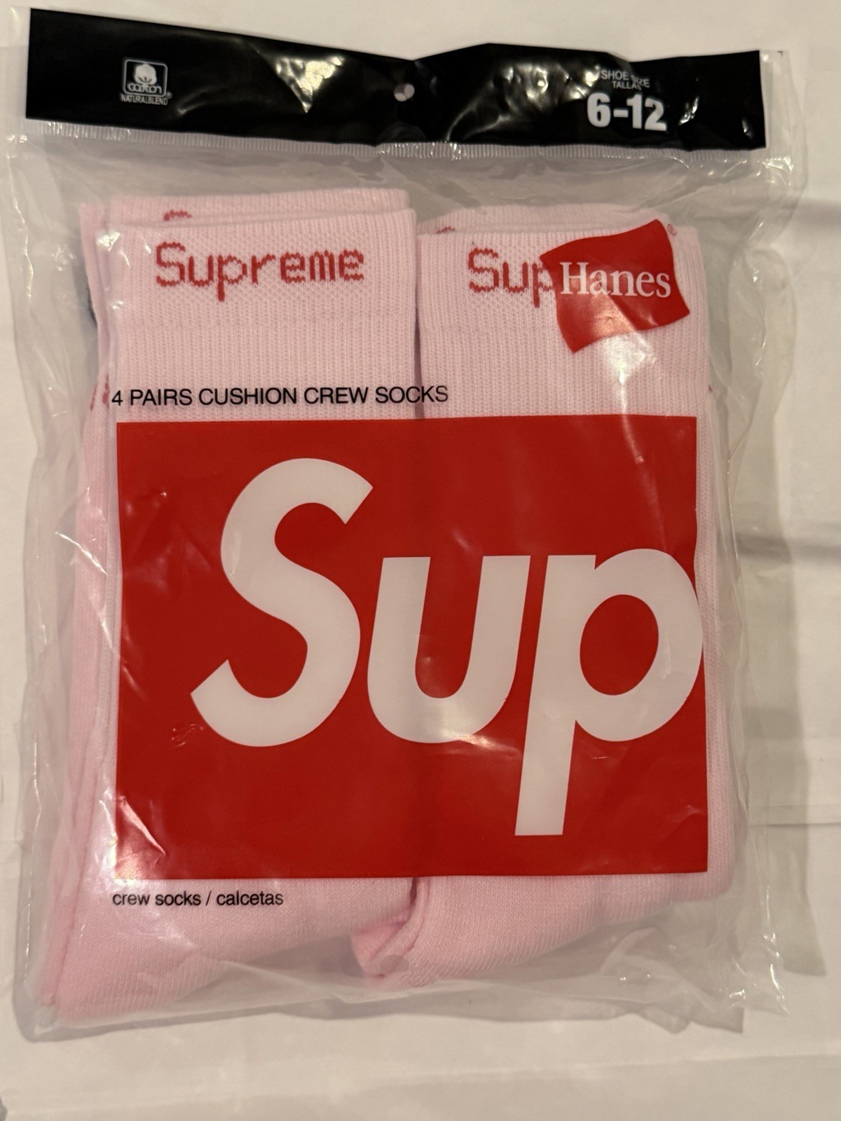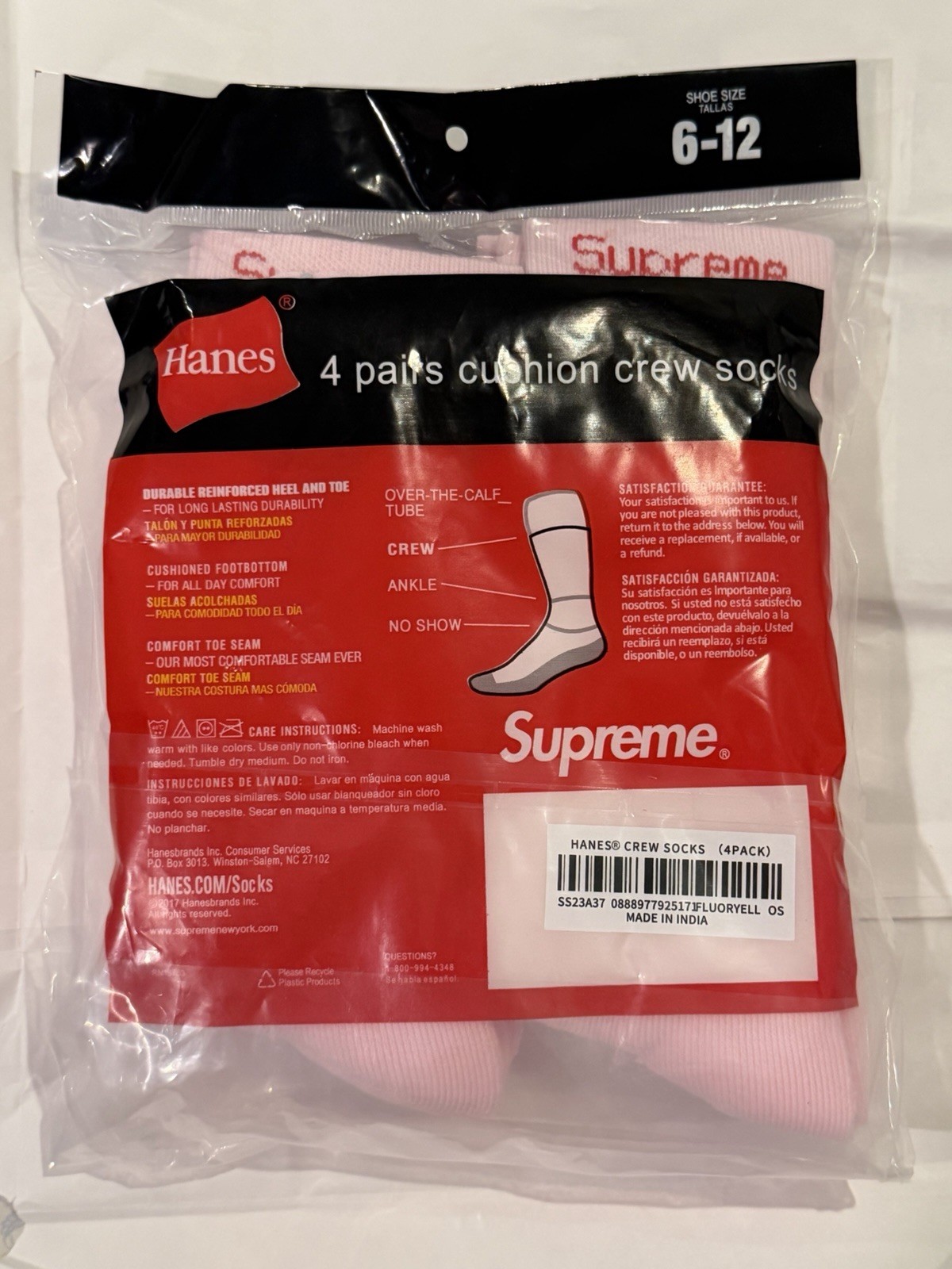 Supreme / Hanes Pink Crew Socks 4-Pack Size 6-12 Fast Free Shipping