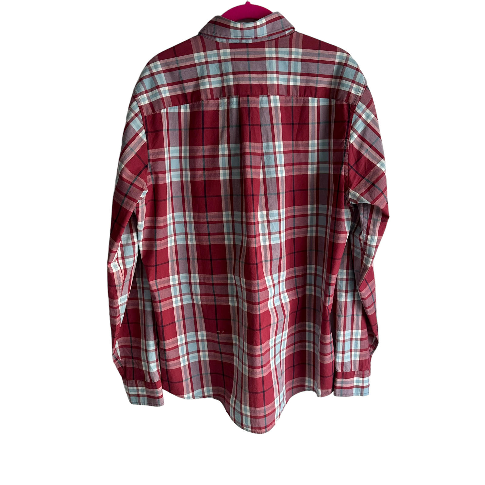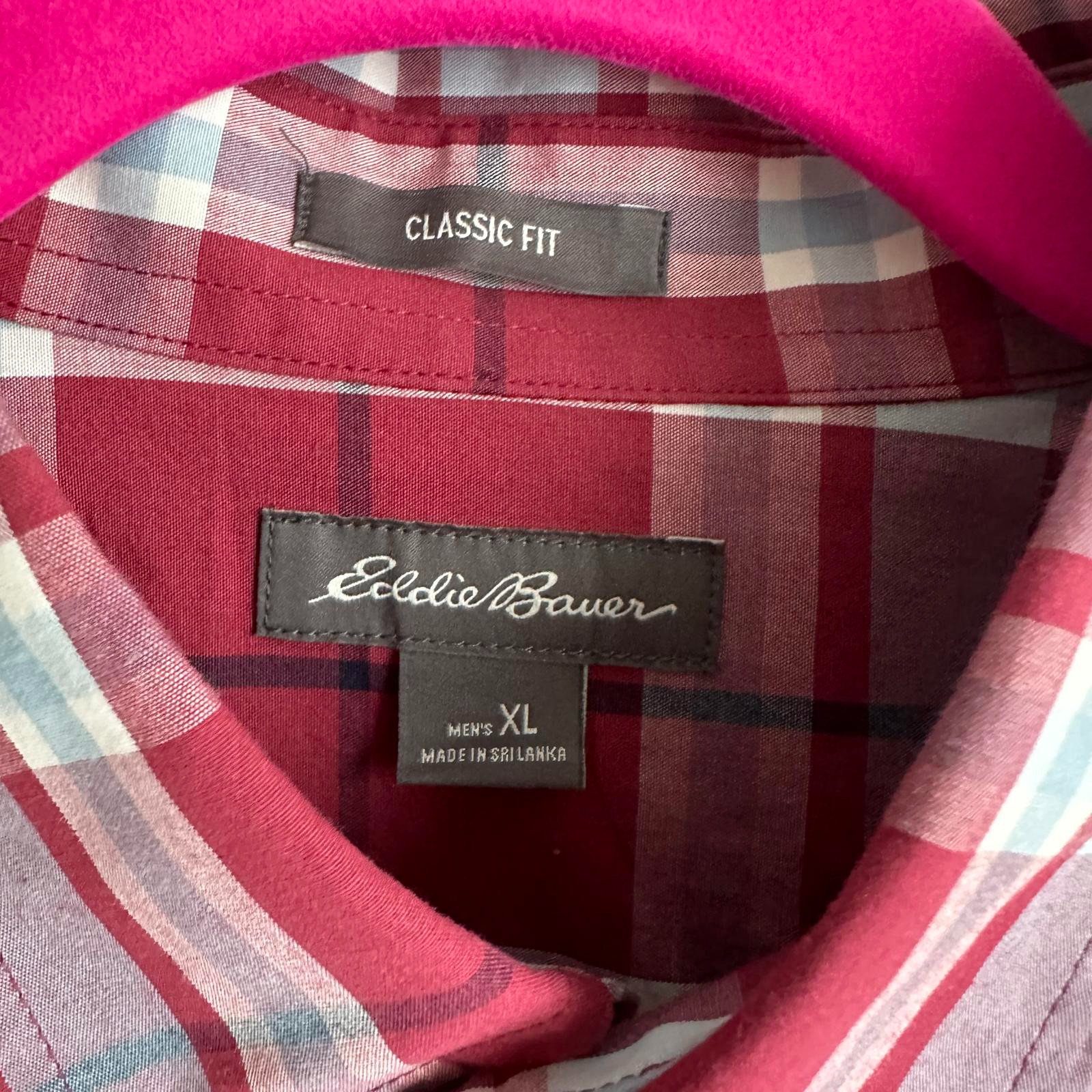 как выглядит EDDIE BAUER Classic Fit Red Blue Plaid Mens Long Sleeve Button Up, XL фото