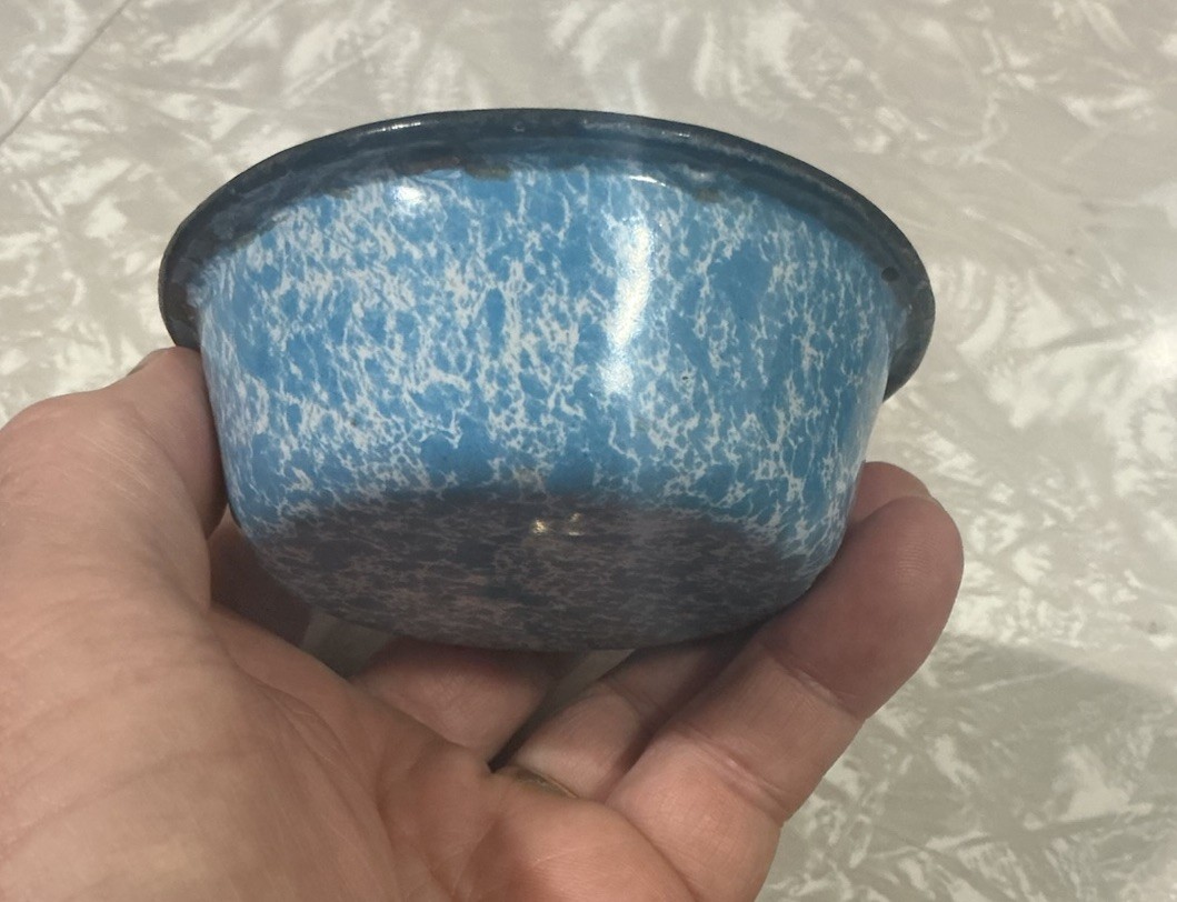MINIATURE SALESMAN SAMPLE BLUE PUDDING PAN N/MINT GRANITEWARE ENAMELWARE ANTIQUE