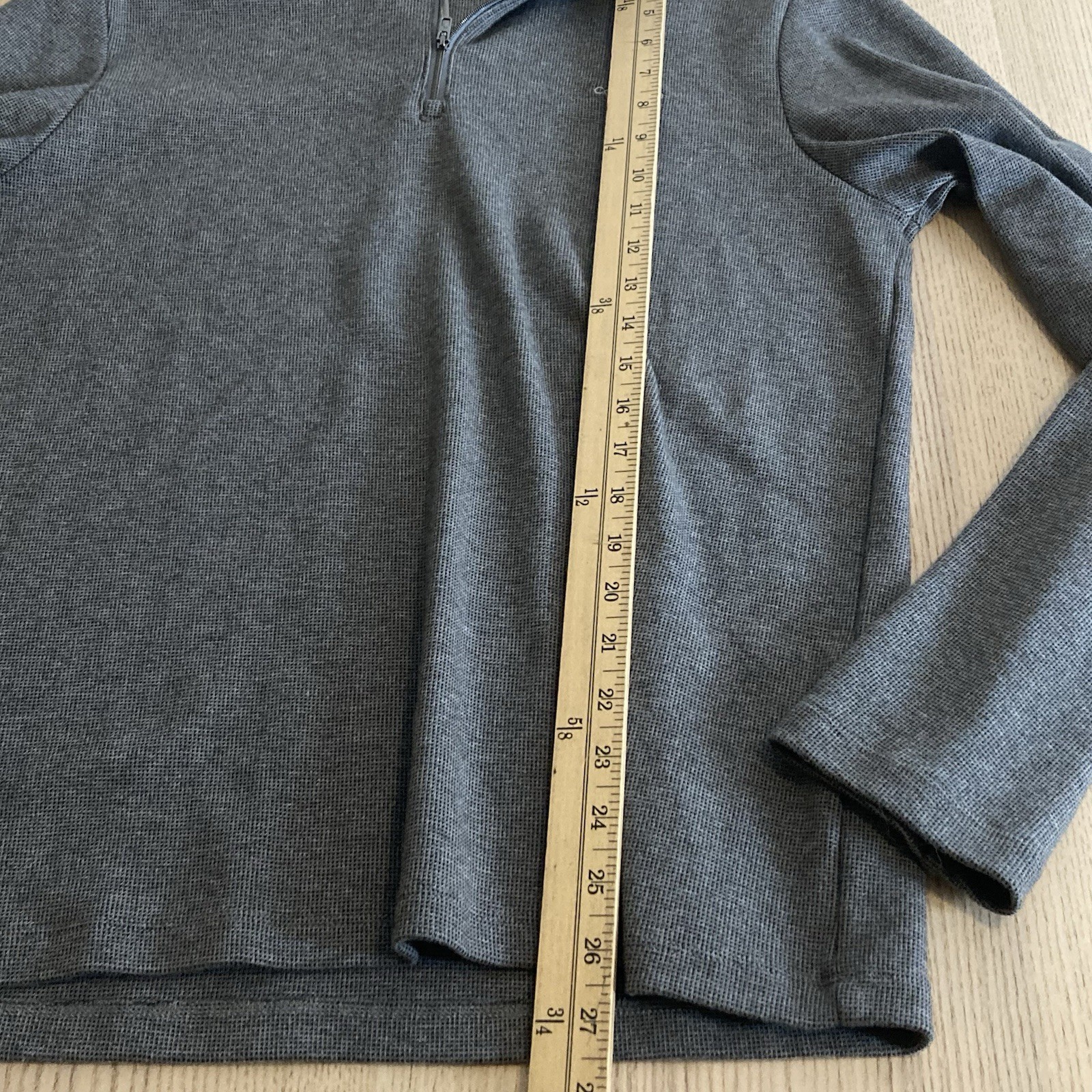 как выглядит Calvin Klein Gray Cotton Textured Square Knit Quarter-Zip Long Sleeves Sweater M фото