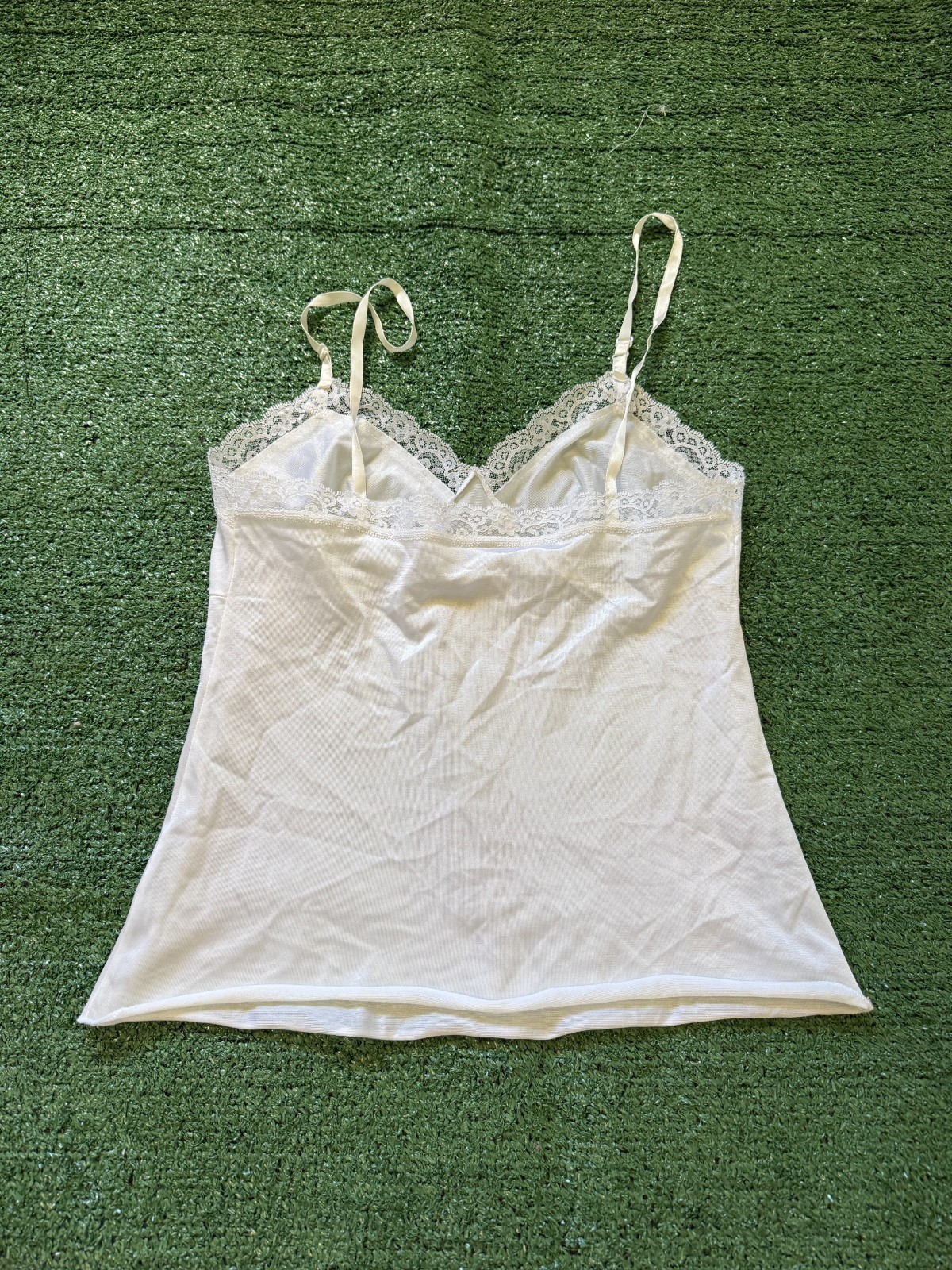 Vintage Women s Fairy Cottage Coquette Dainty Satin Slip Lace Cami Tank Top M