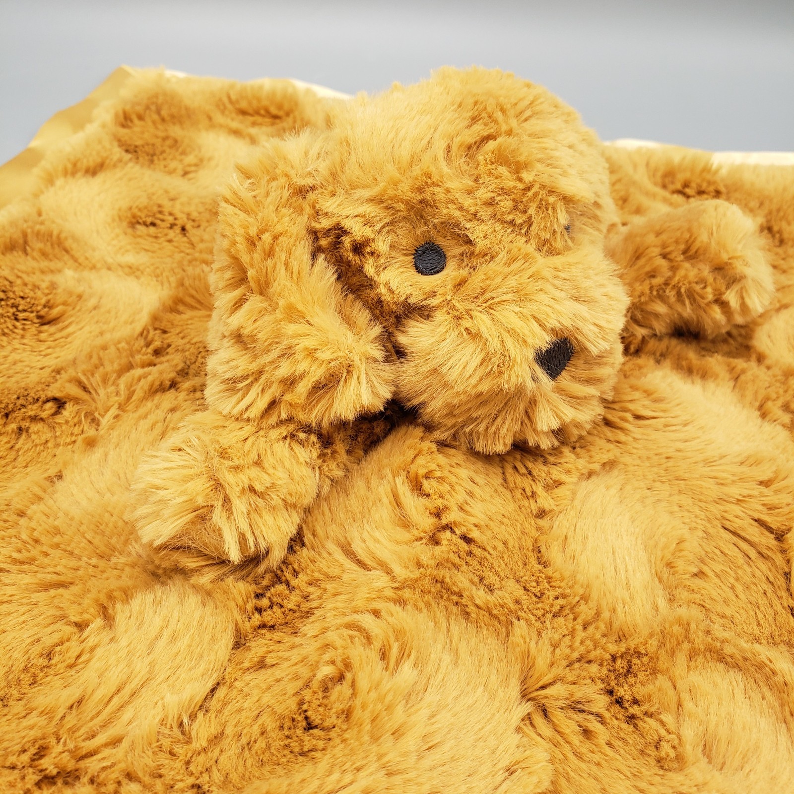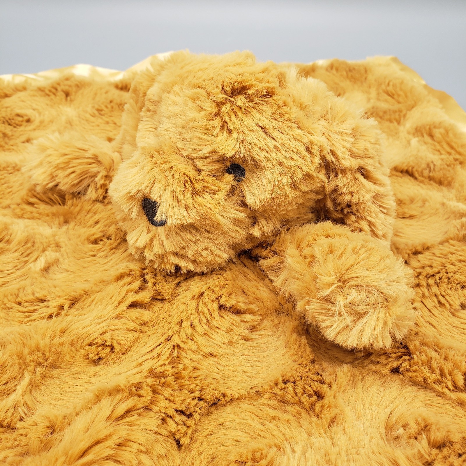 Cloud Island Golden Brown Dog Plush Lovey Security Blanket 14 Swirls Satin Trim