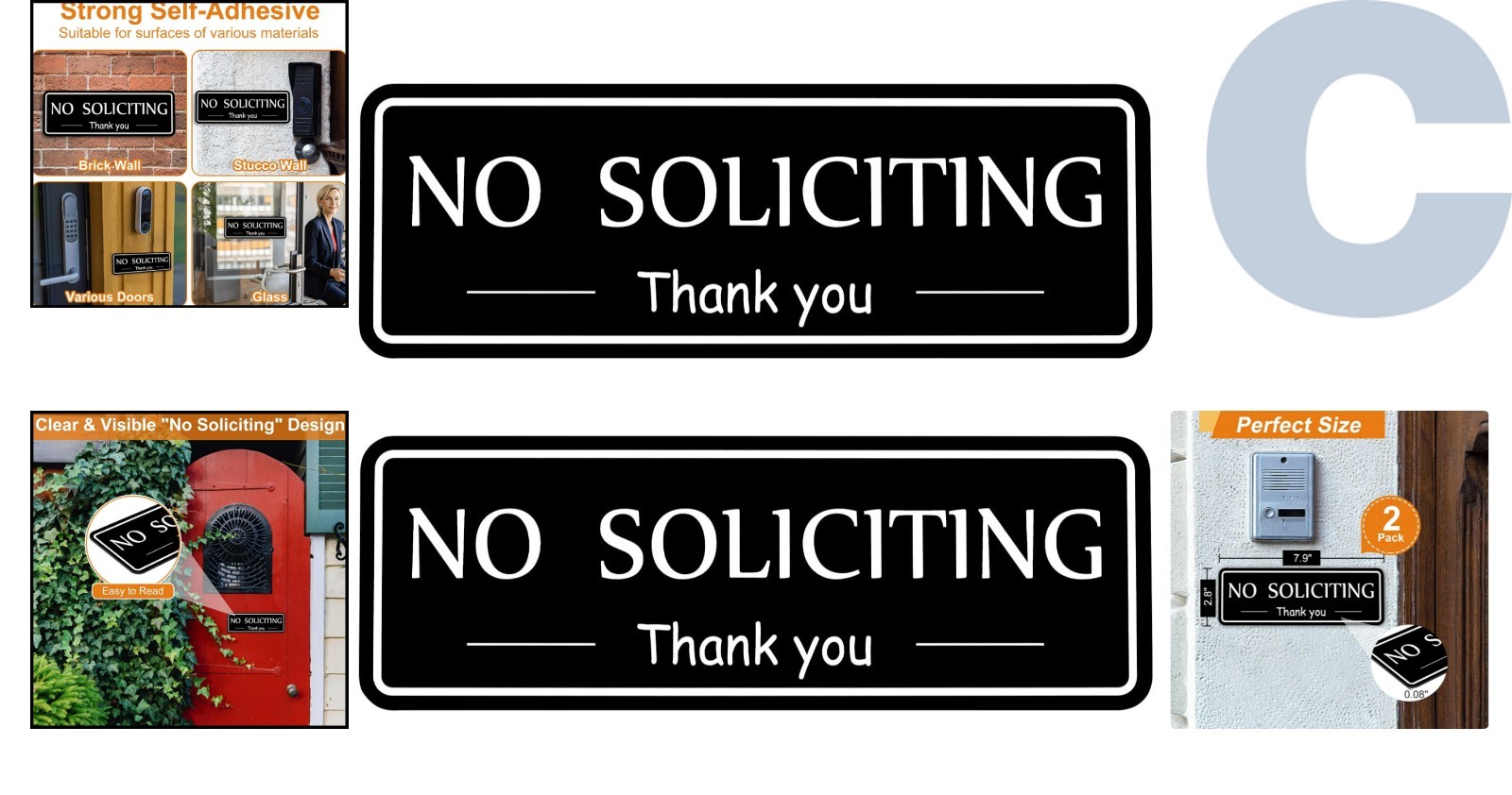 как выглядит Elegant 2 Pack No Soliciting Signs Self-Adhesive Weatherproof 7.9"x2.8" фото