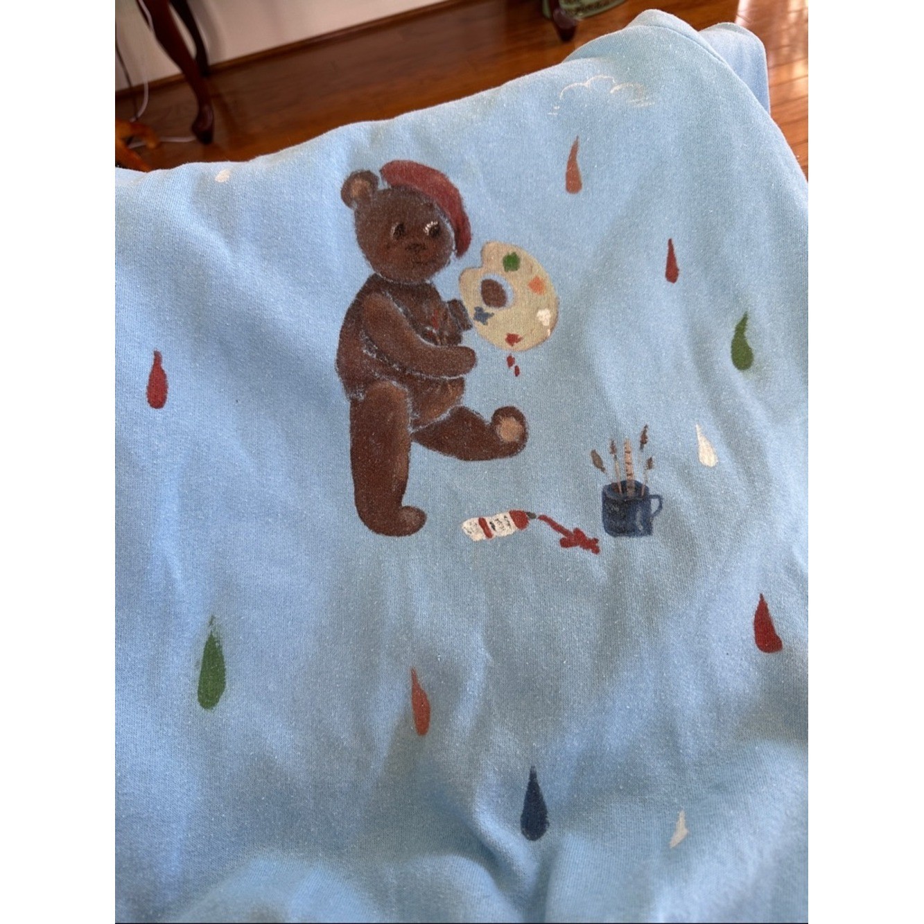 как выглядит Vintage 80s/90s Light Blue Sweatshirt with Hand Painted Teddy Bear Motif фото