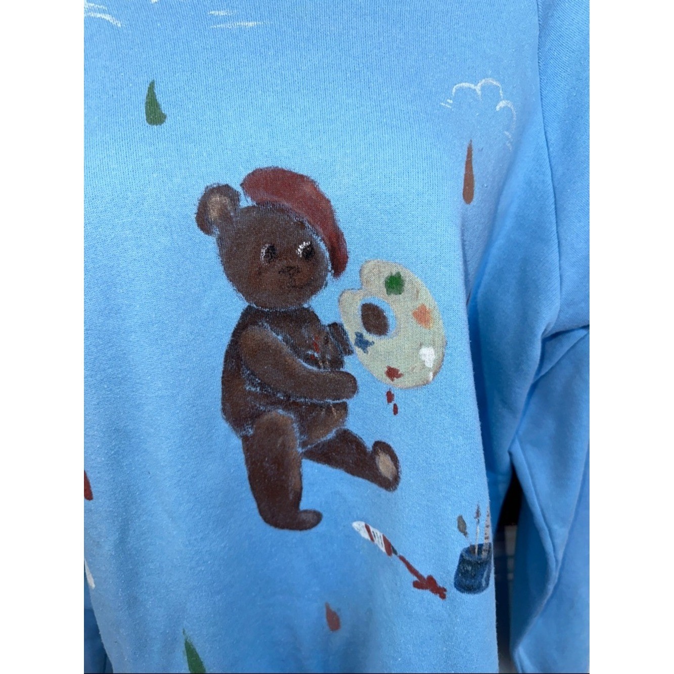 Vintage 80s/90s Light Blue Sweatshirt with Hand Painted Teddy Bear Motif