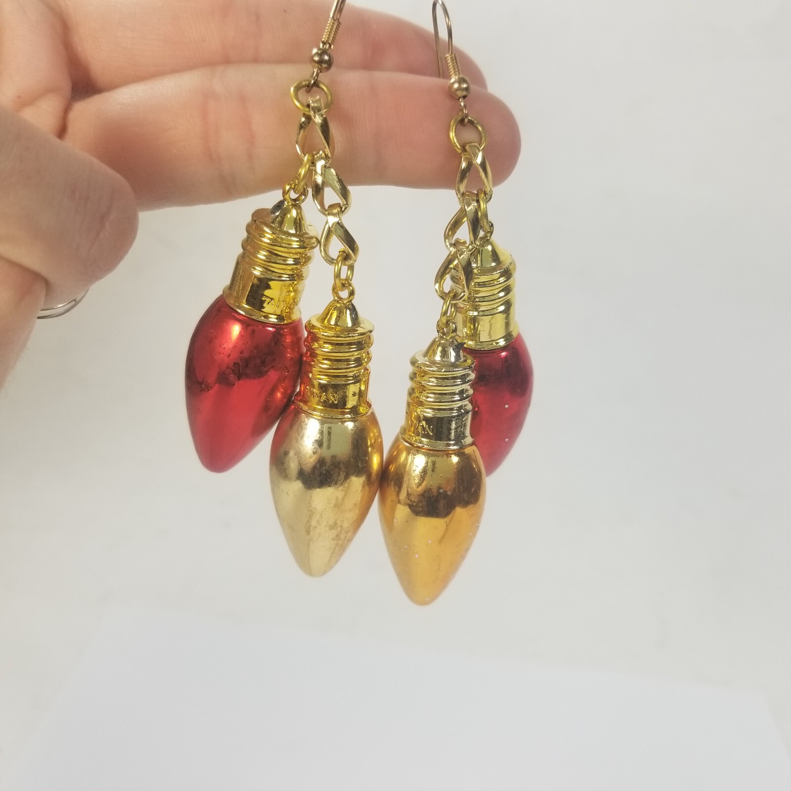как выглядит Christmas Light Bulb Dangle Earrings Red and Gold Large фото
