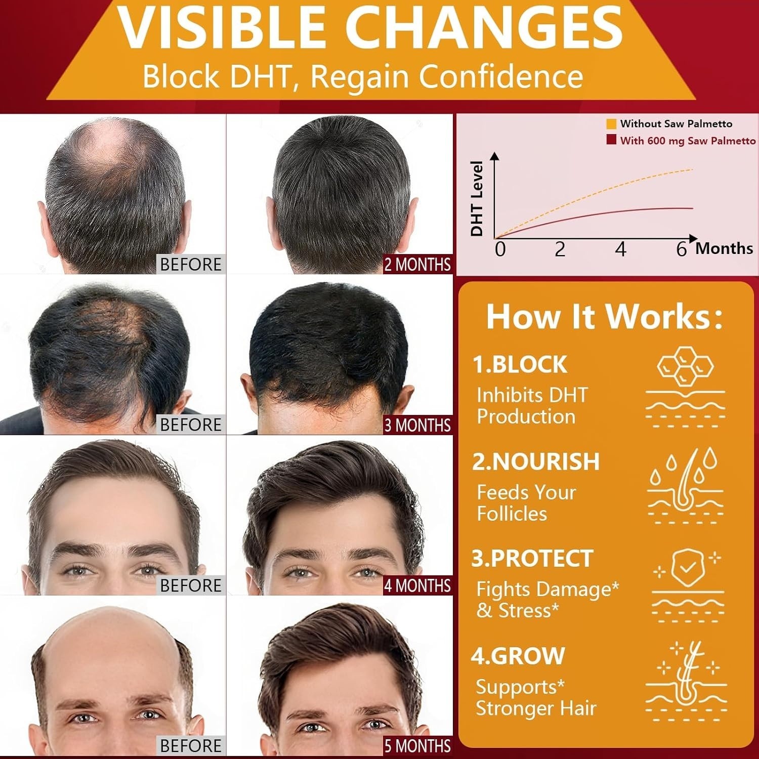 DHT Blocker for Men with Saw Palmetto Biotin, Hair Growth Supplement, 90 caps