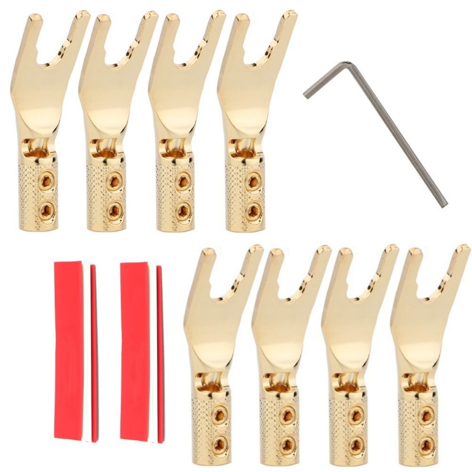 8pcs Gold Plated Y Spade Plug Speaker Cable Connector HIFI Audio Amplifier Fork