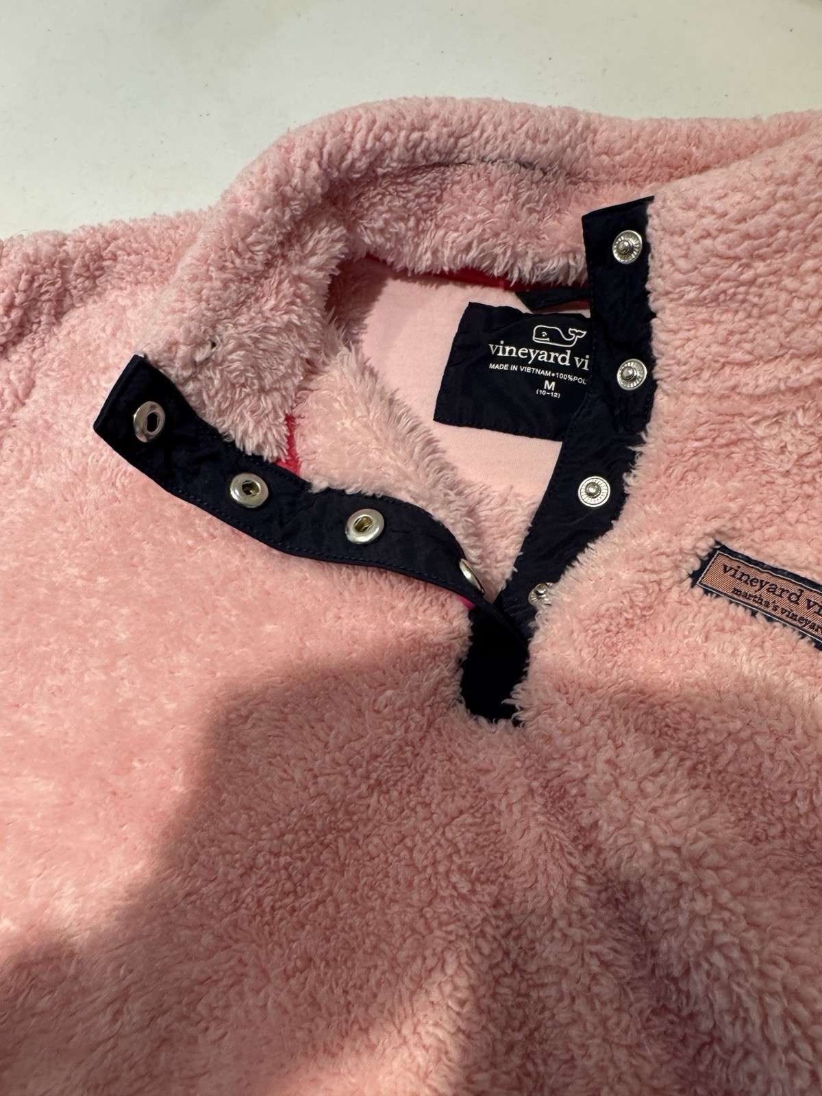 как выглядит Vineyard Vines Girls Pink Sherpa Fleece Pullover Quarter Snap M 8/10 фото