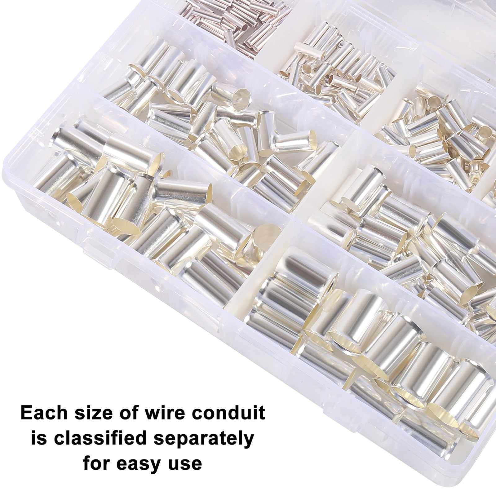 Wire Ferrules Kits Silver Plated Copper Crimp Terminal Connector 8 Sizes AWG ...