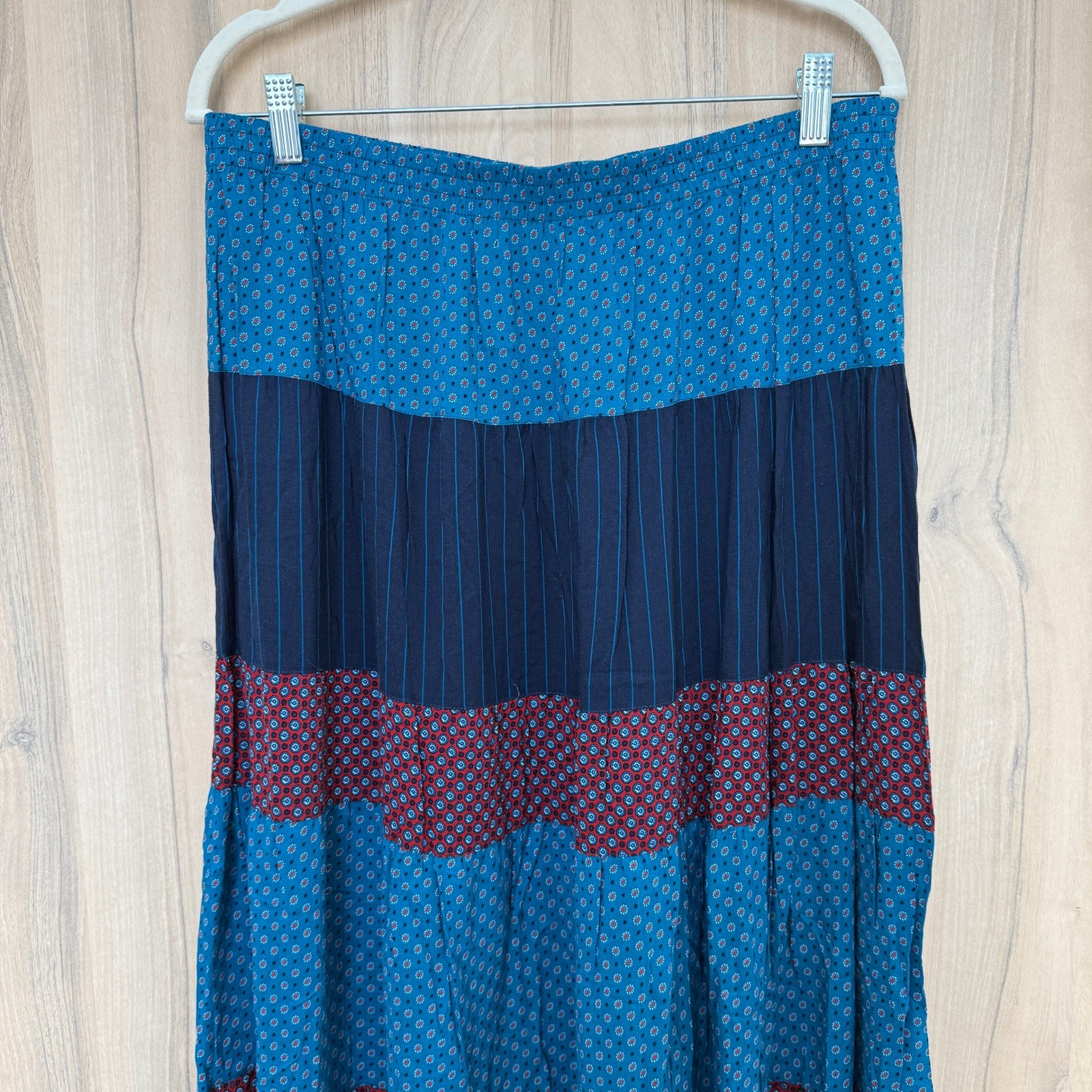 VTG Carole Little Womens Maxi Skirt Size 16 Blue Tiered Mixed Print Cottage Boho