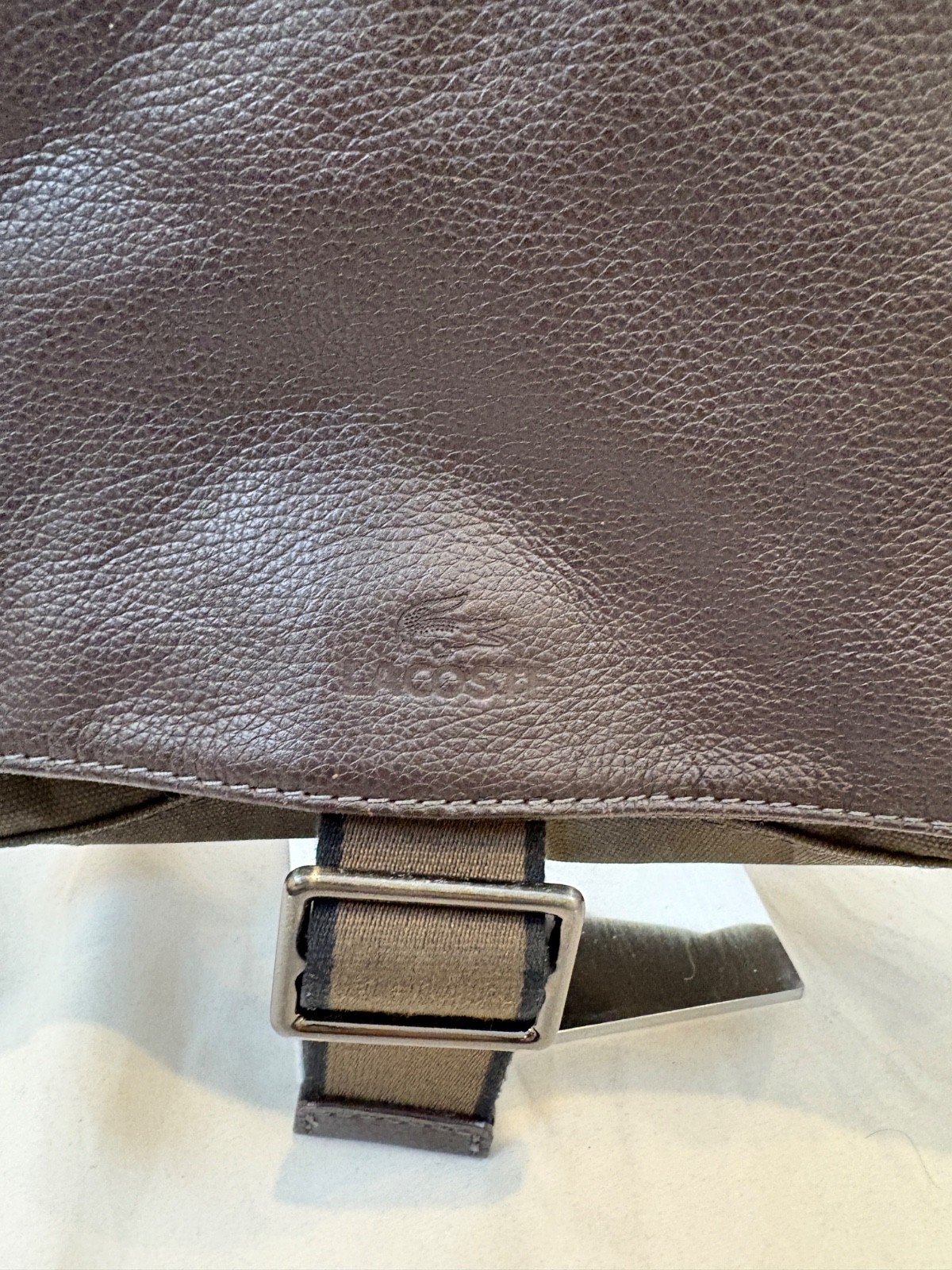 как выглядит Vtg LACOSTE Canvas Leather Flap Crossbody Messenger Bag Unisex DQ фото