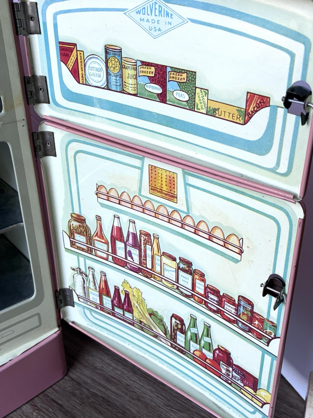 как выглядит Wolverine Vintage PINK TIN TOY Child s Play Playset Kitchen Refrigerator EXC фото