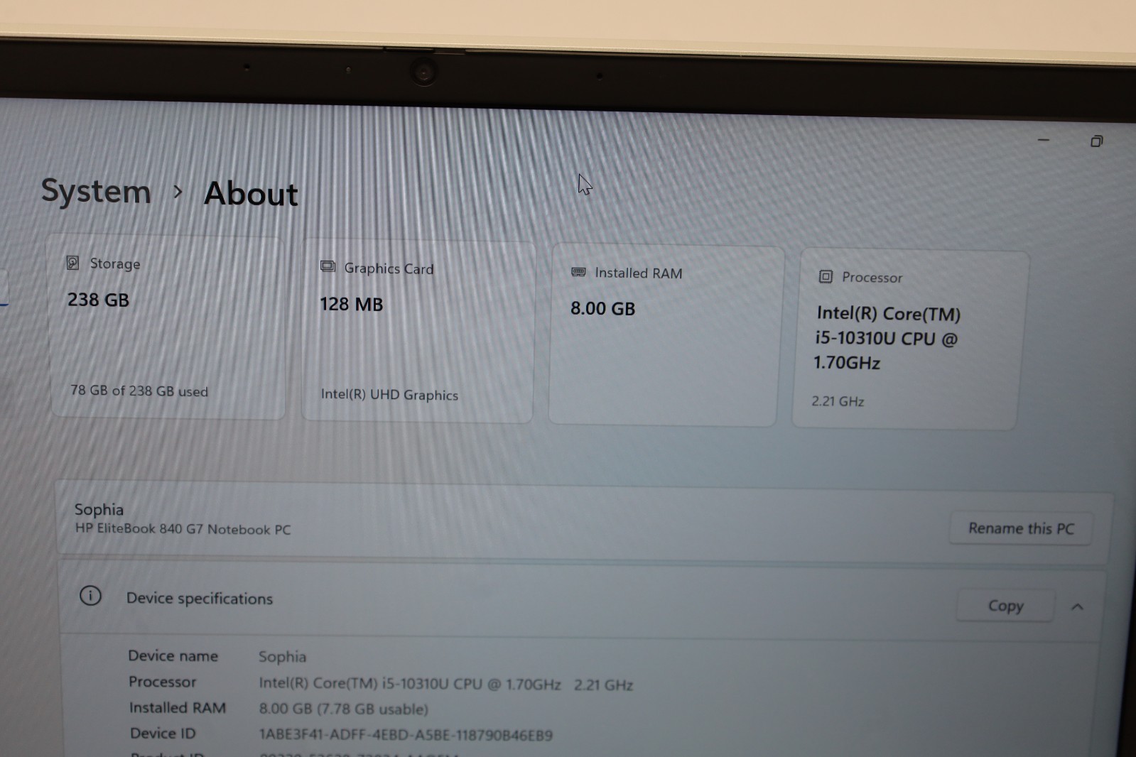 HP EliteBook 840 G7 14 Intel Core i5-10310U, 8GB RAM, 256GB SSD Windows 11 Pro