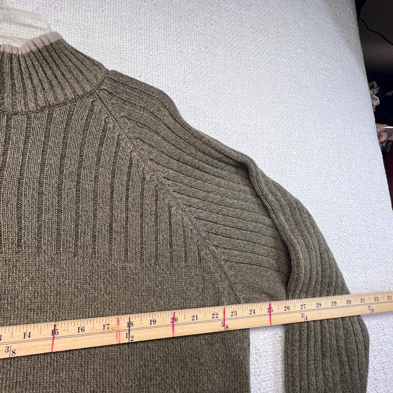 Columbia Men's XL 1/4 Zip Sweater Olive Green Ribbed Knit Mock Neck 100 Cotton