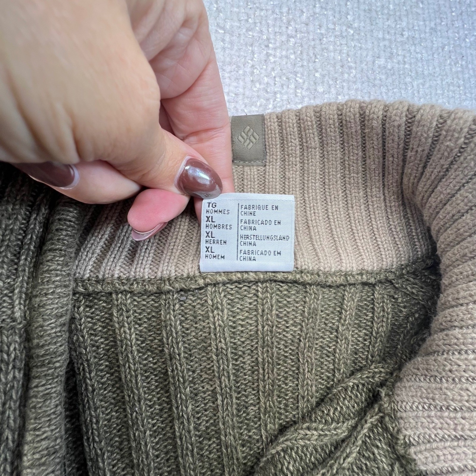 как выглядит Columbia Mens XL 1/4 Zip Sweater Olive Green Ribbed Knit Mock Neck 100 Cotton фото