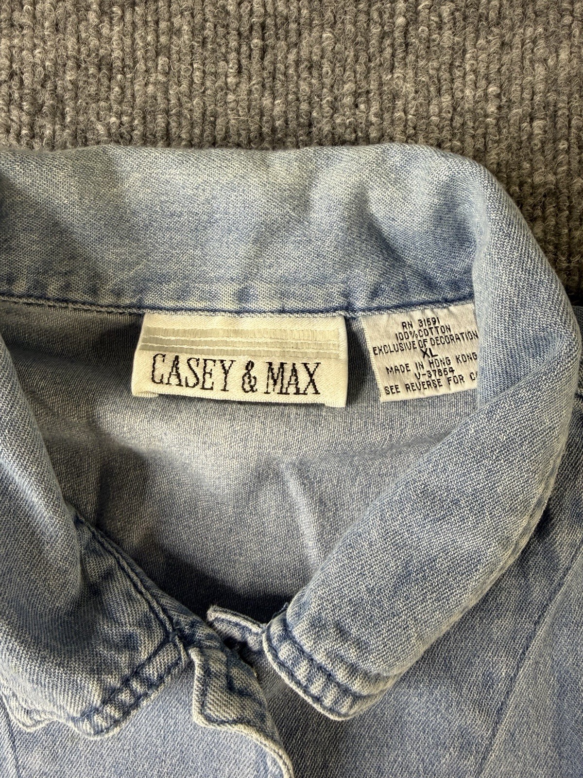 Vintage 90s Casey Max Boho Button Front Vest Womens XL Blue Denim Grandmacore