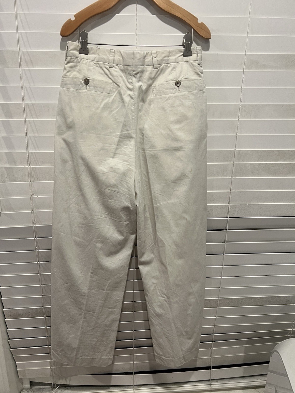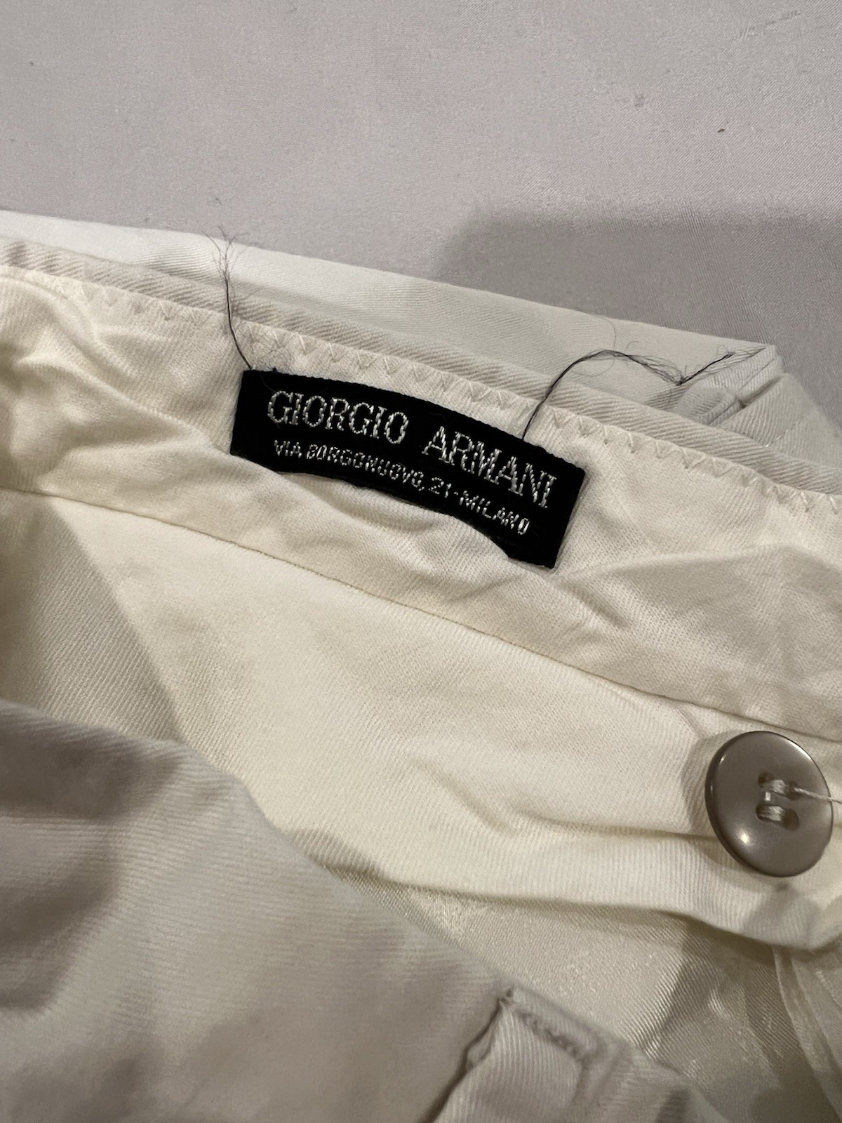 как выглядит Vtg. Giorgio Armani White Cotton Pleated Pants Wide Leg Size 29x28 фото