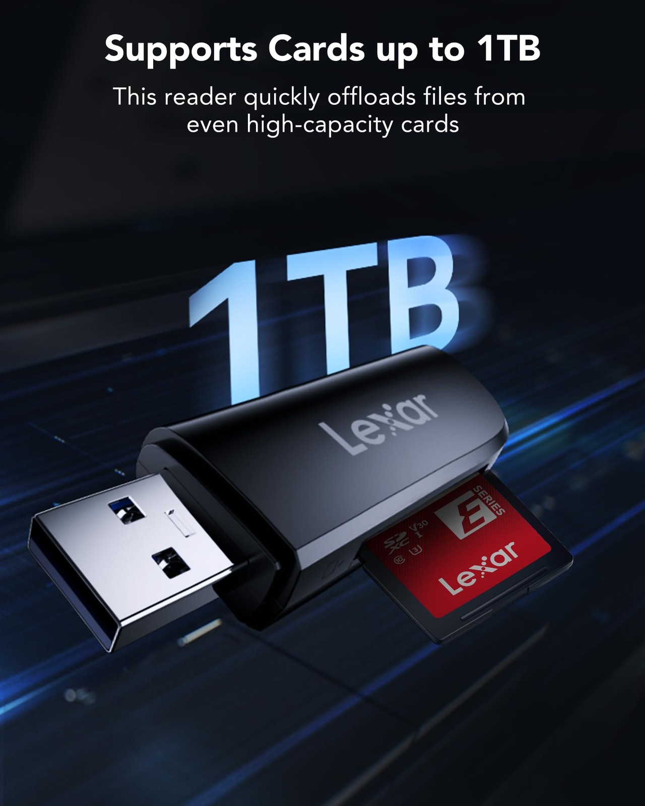Lexar Dual Slot USB-A Reader, USB 3.2 Gen 1 Up to 104MB/s, for Black