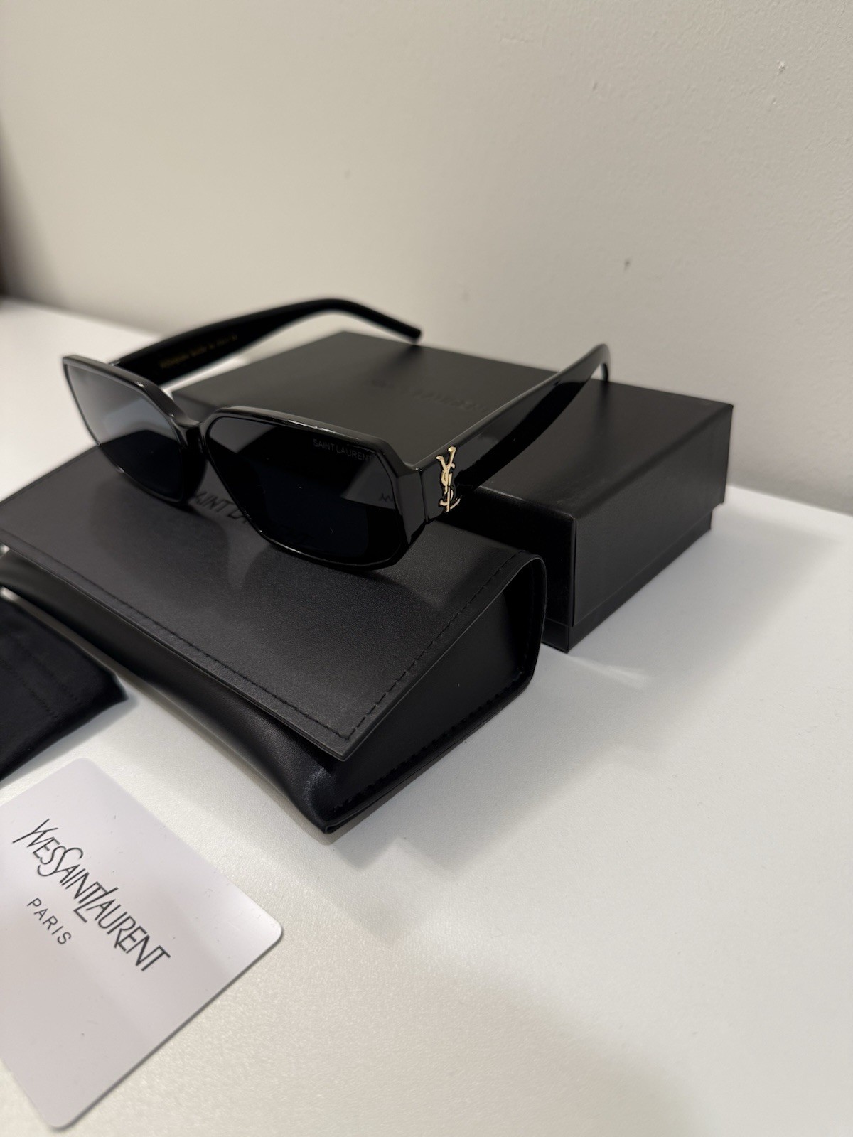 как выглядит Saint Laurent 6293 Mens Black Rectangle Plastic Sunglasses Designer Classic фото