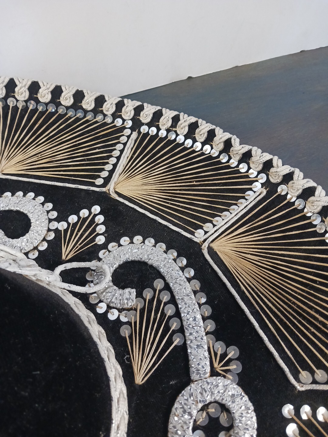 Vintage Mexican Sombrero Black Velvet Silver Accents Mariachi 22"