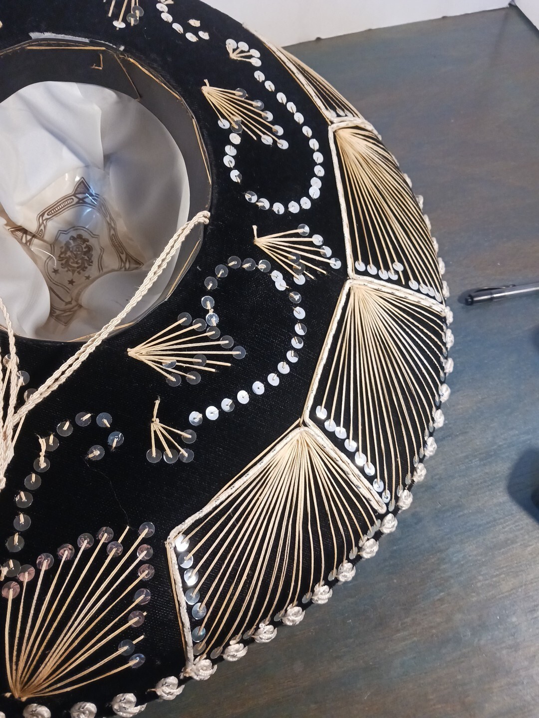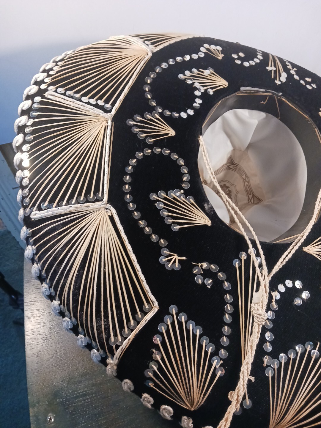 Vintage Mexican Sombrero Black Velvet Silver Accents Mariachi 22